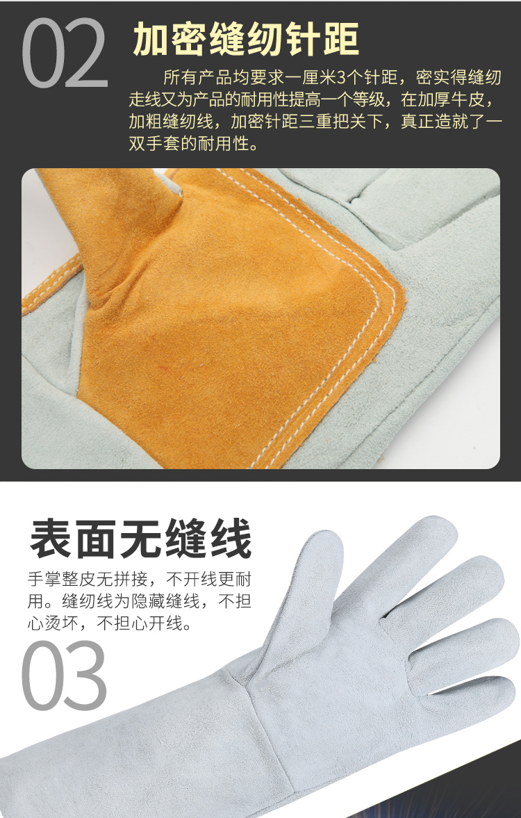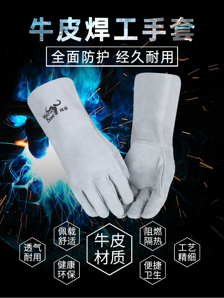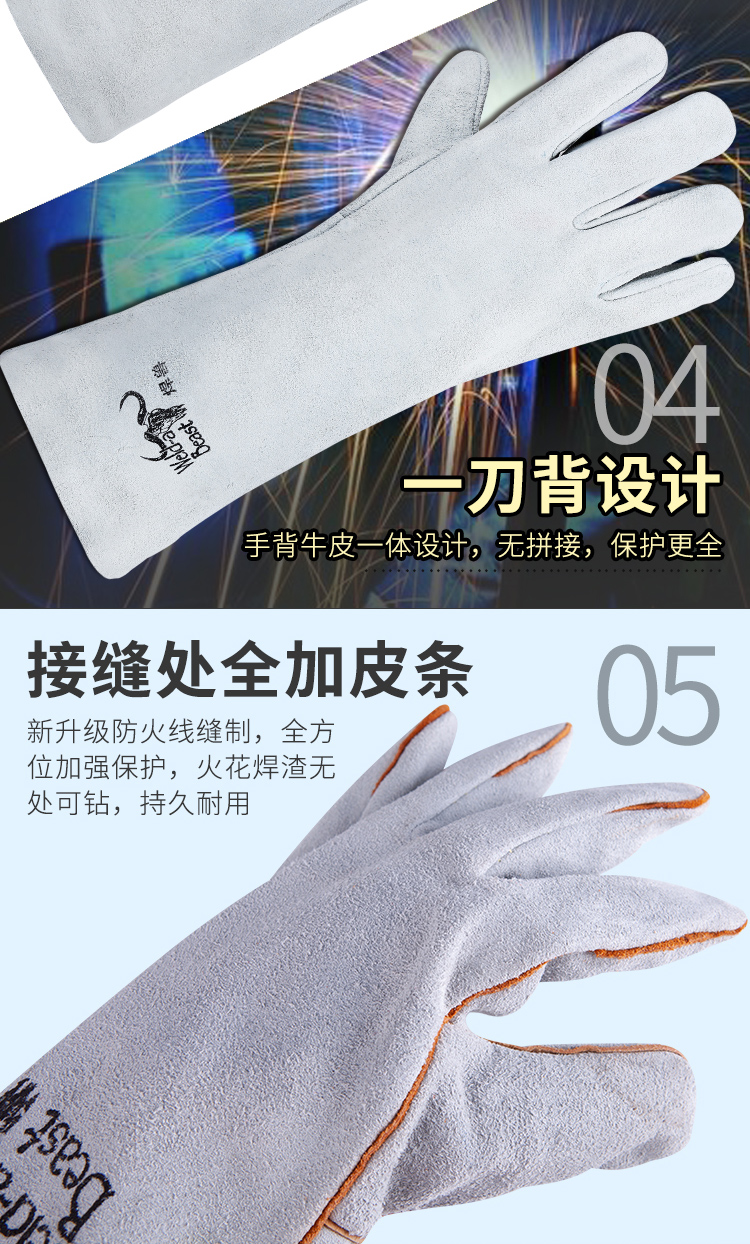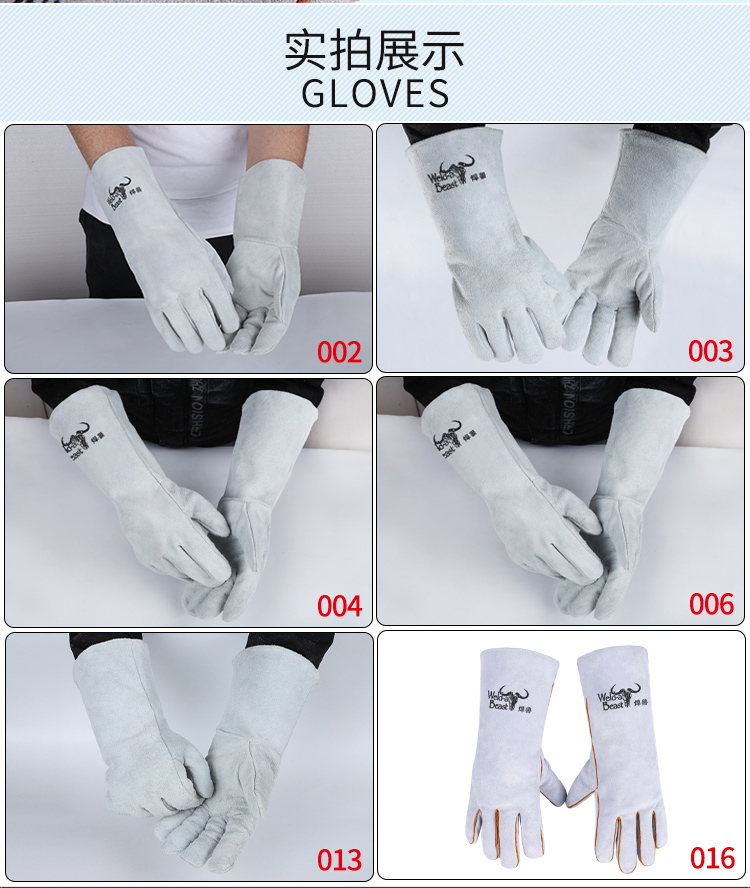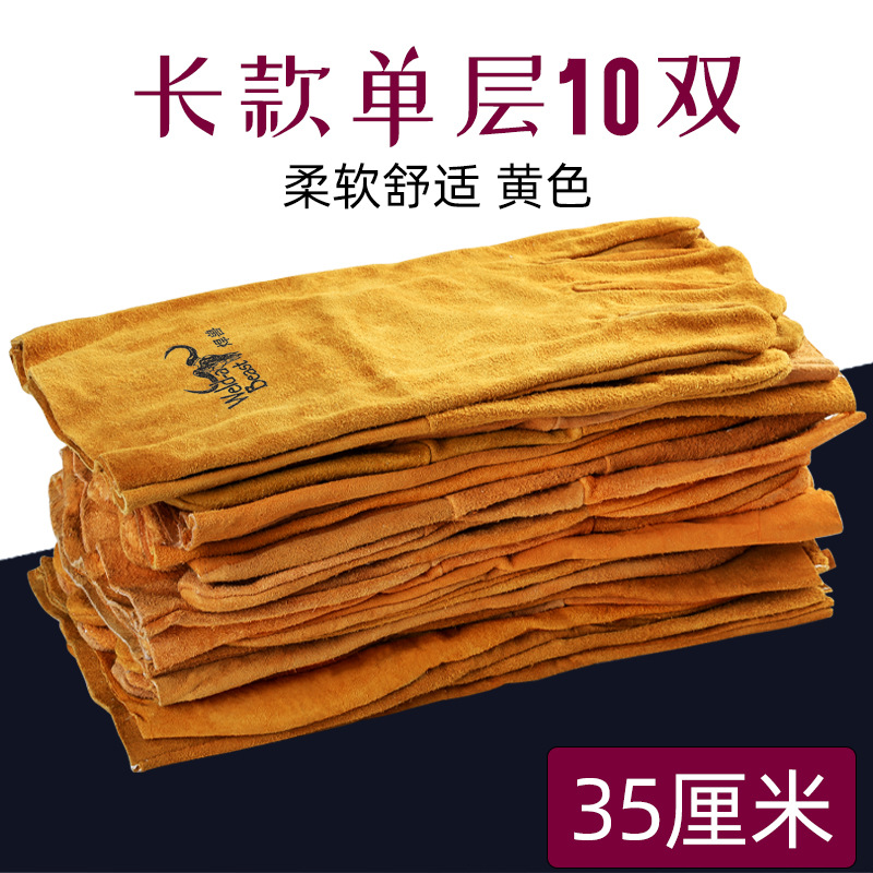 용접용 소가죽 용접 장갑 10쌍, 부드럽고 길고 화상 방지 및 고온 방지 용접공 용접 보호 노동 보호 및 내마모성