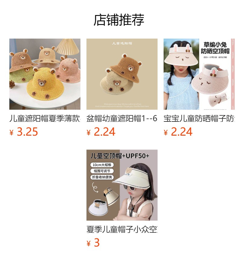 儿童防晒帽 儿童遮阳帽 儿童草编帽 儿童太阳帽