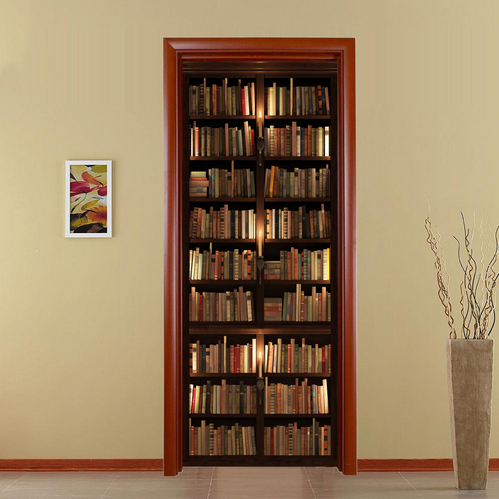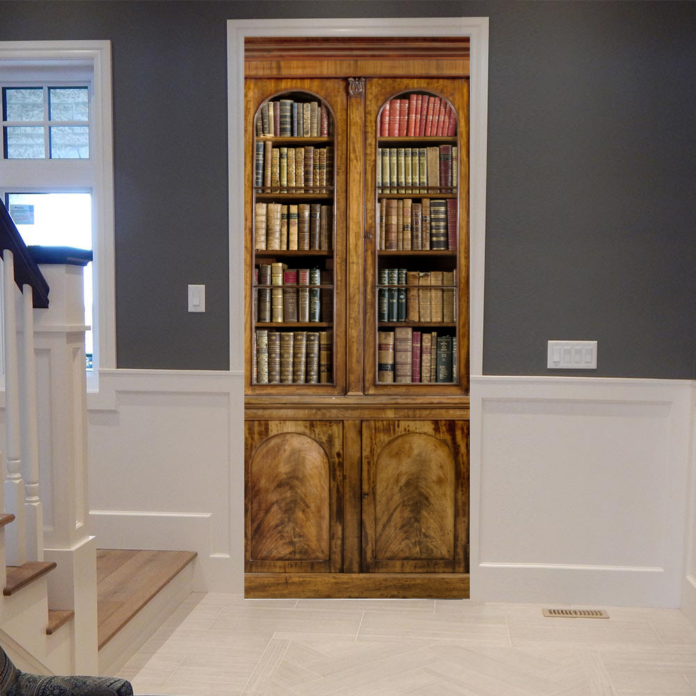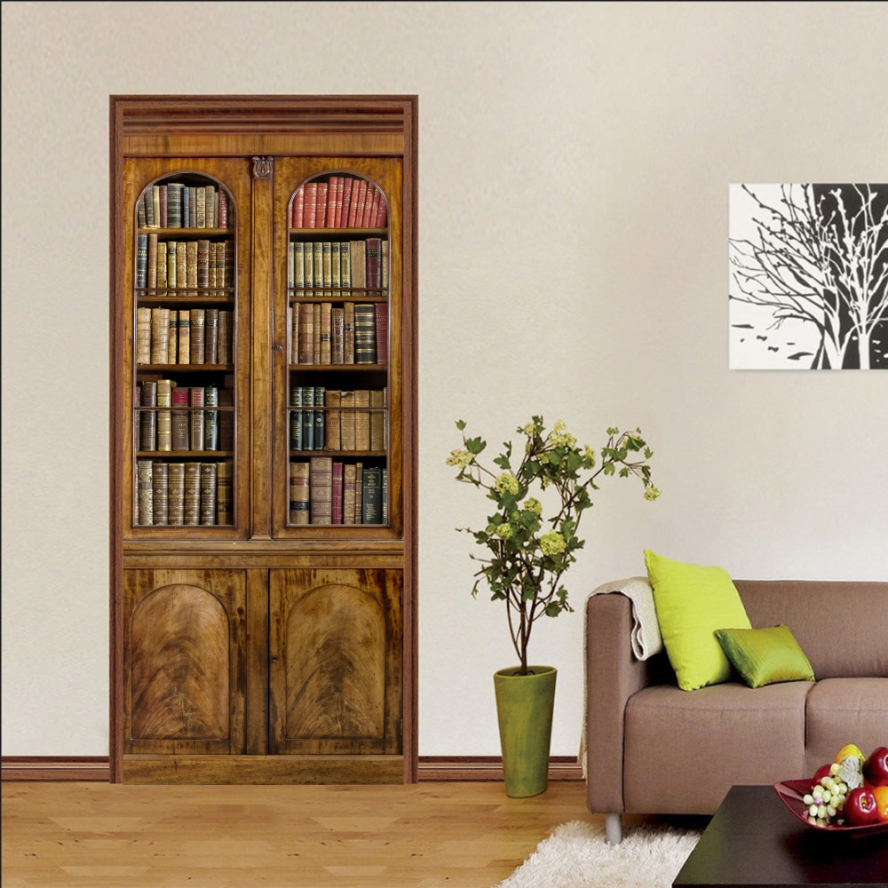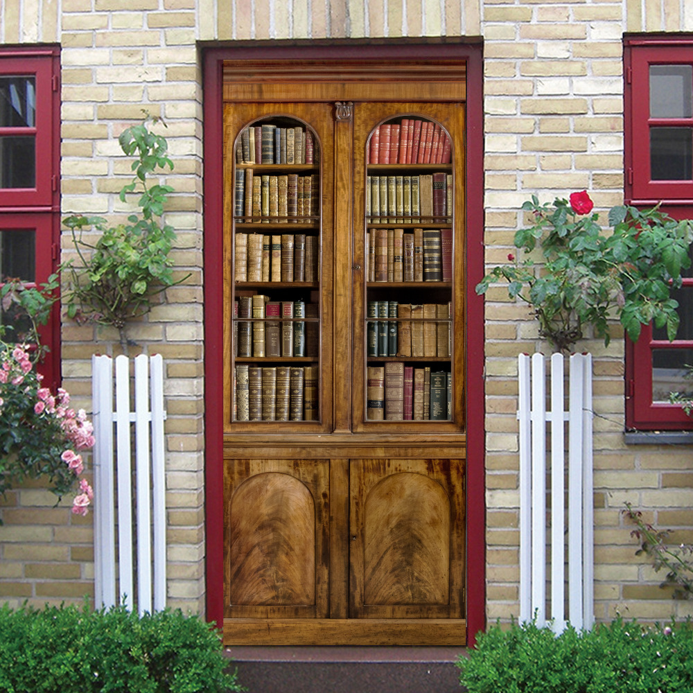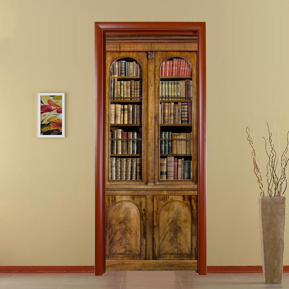 유럽 복고풍 연구 책장, 책장 패턴, 문 스티커, 가족 벽 스티커 분리 가능한 방수 벽화