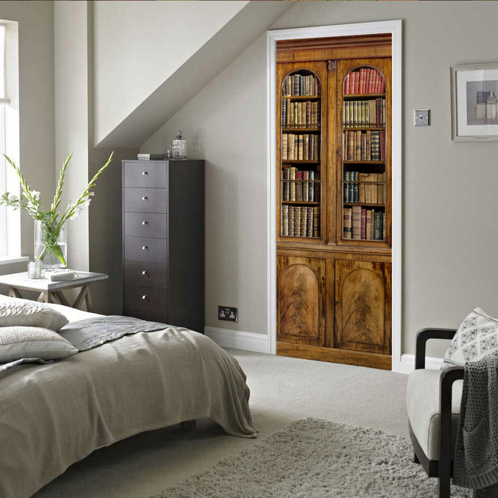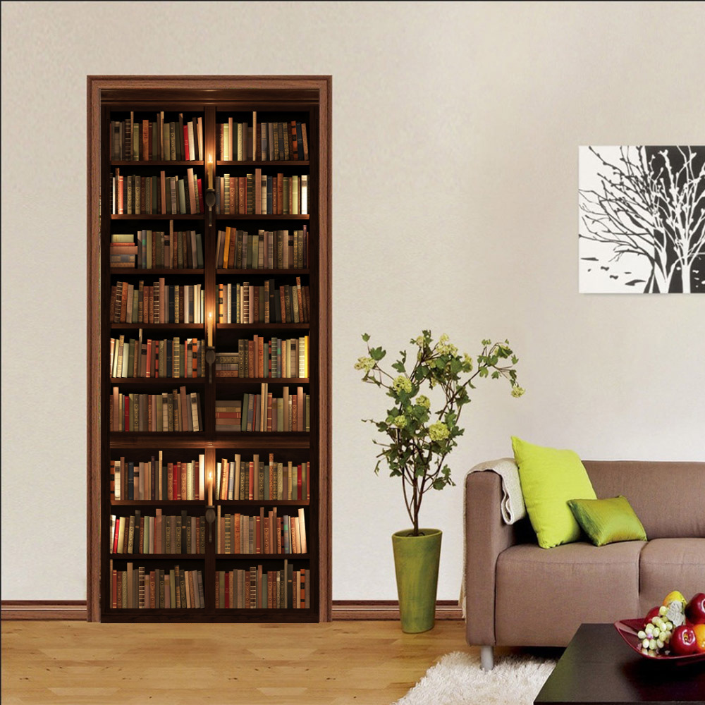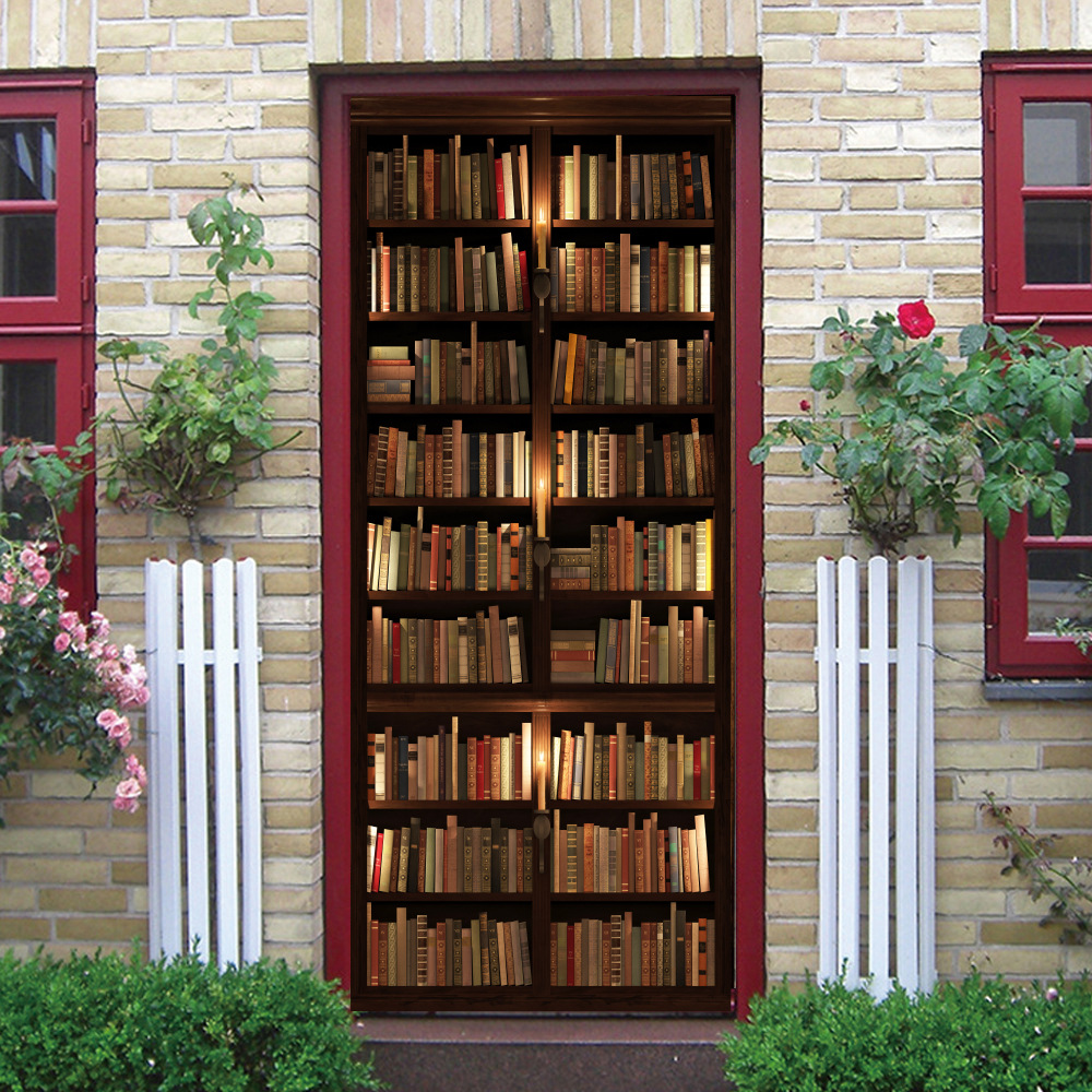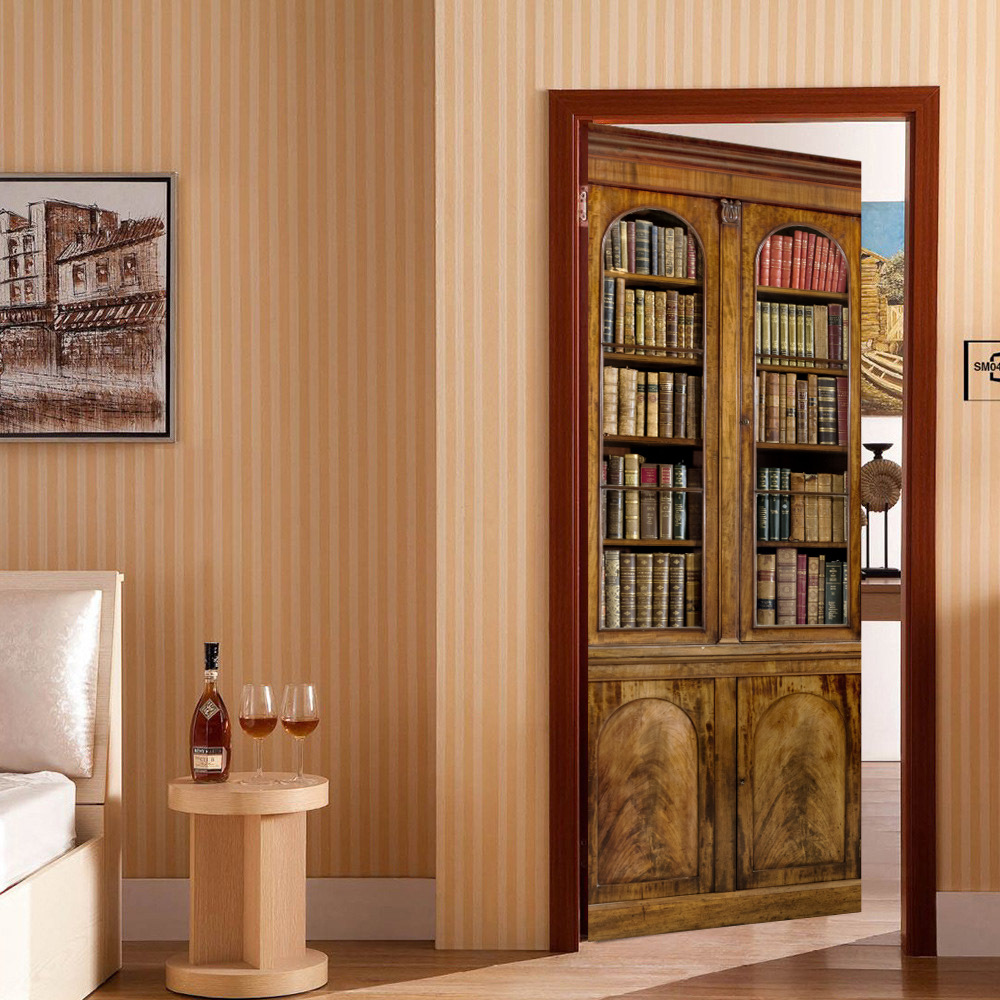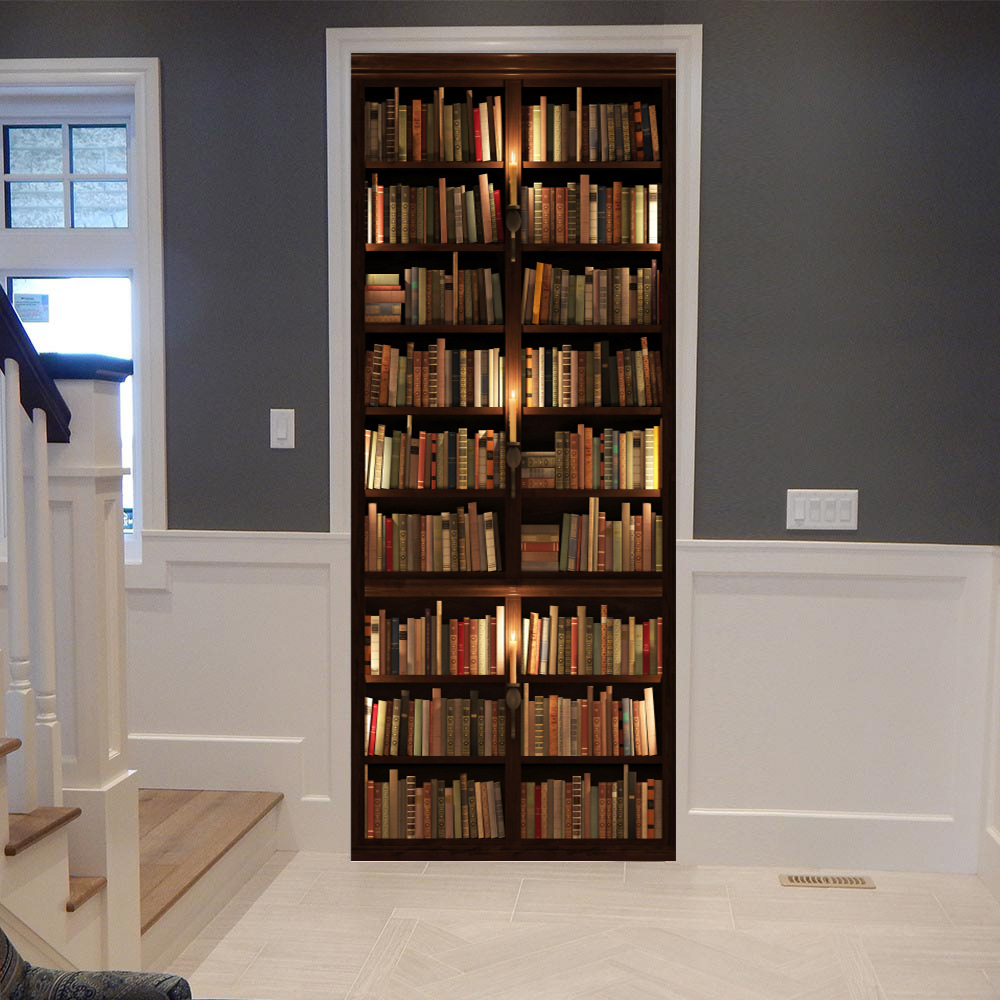 유럽 복고풍 연구 책장, 책장 패턴, 문 스티커, 가족 벽 스티커 분리 가능한 방수 벽화