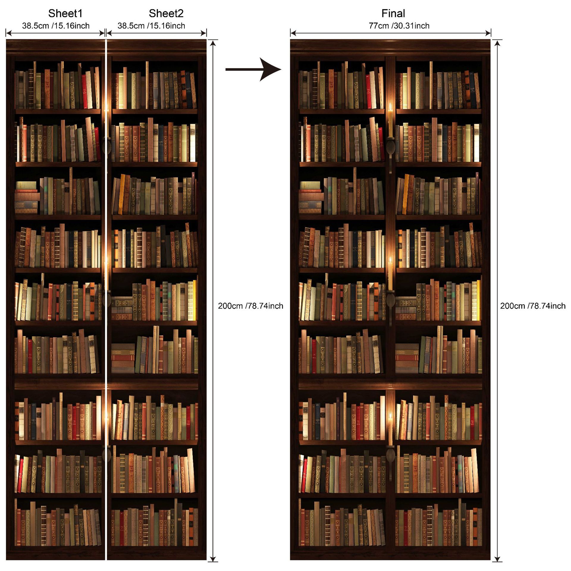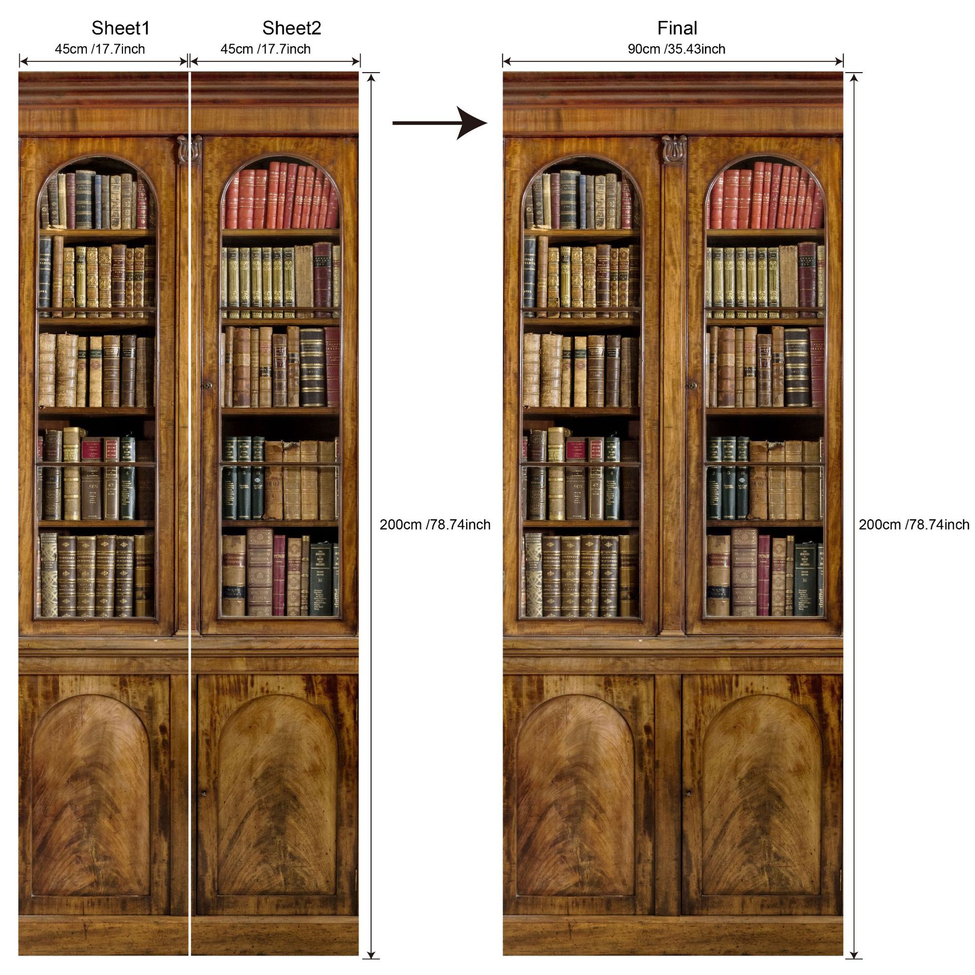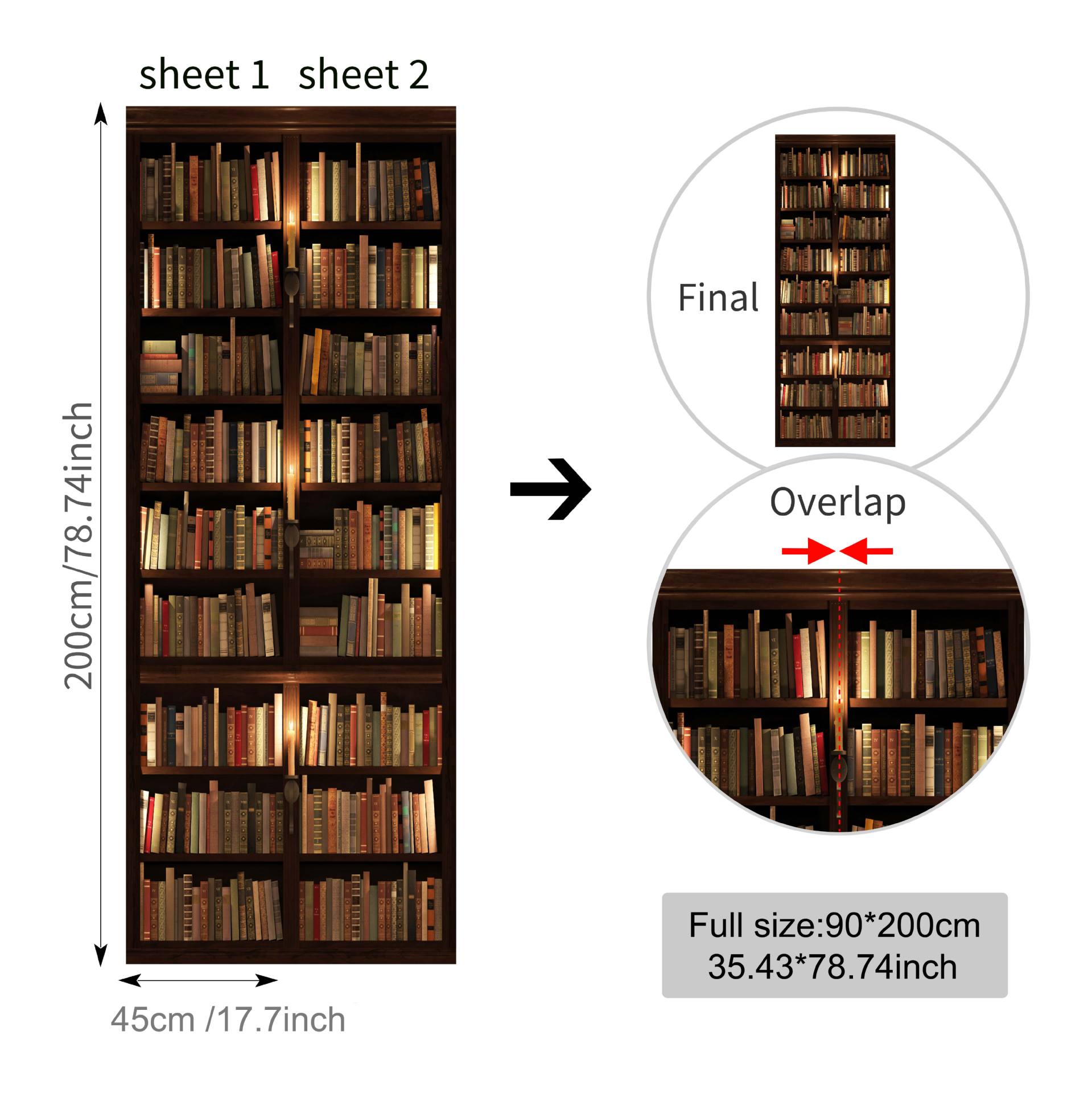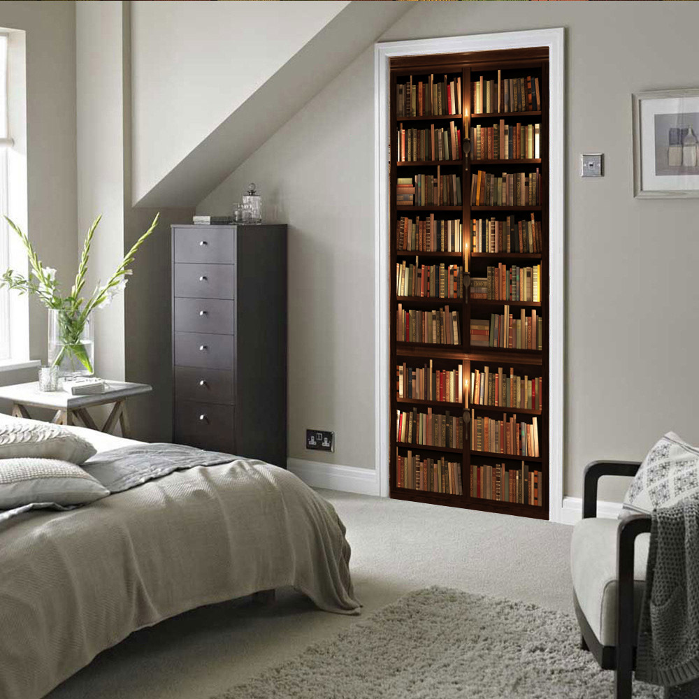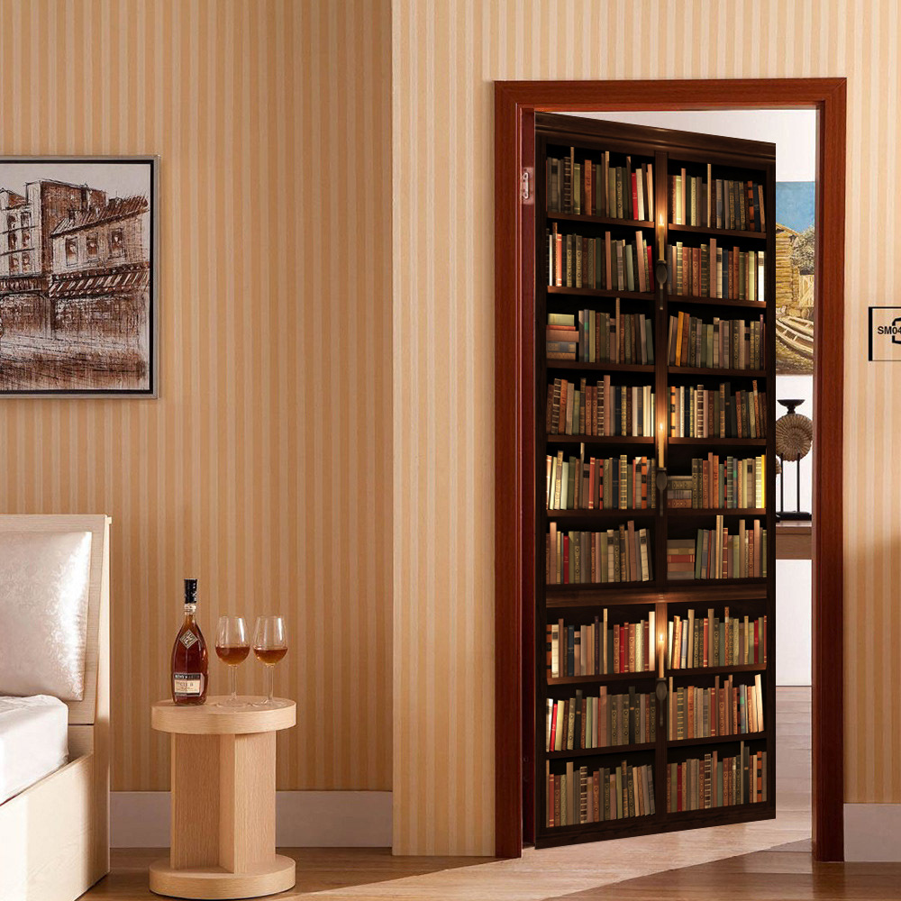 유럽 복고풍 연구 책장, 책장 패턴, 문 스티커, 가족 벽 스티커 분리 가능한 방수 벽화