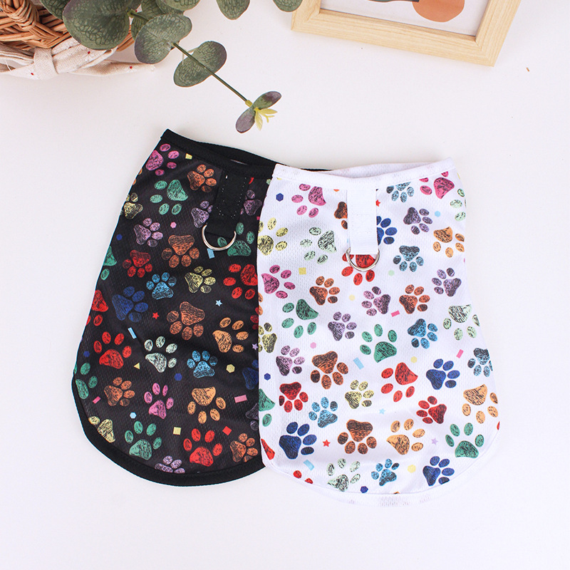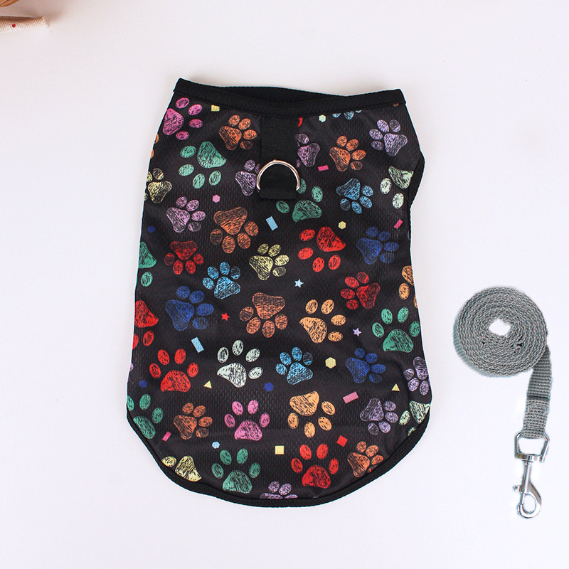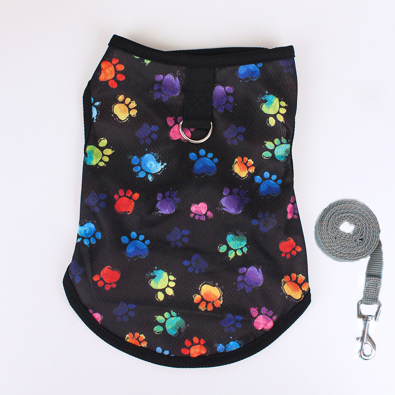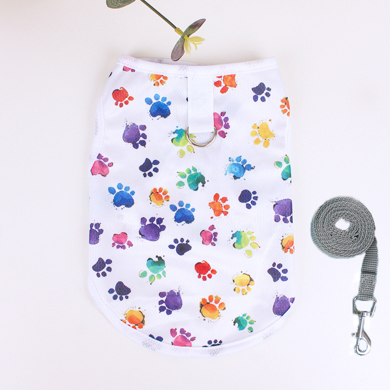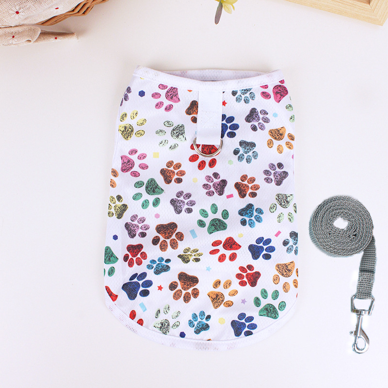 개 옷 테디 베어 봄과 여름 초박형 민소매 조끼 밧줄이있는 고양이 조끼를 당길 수 있습니다.스토어 가기