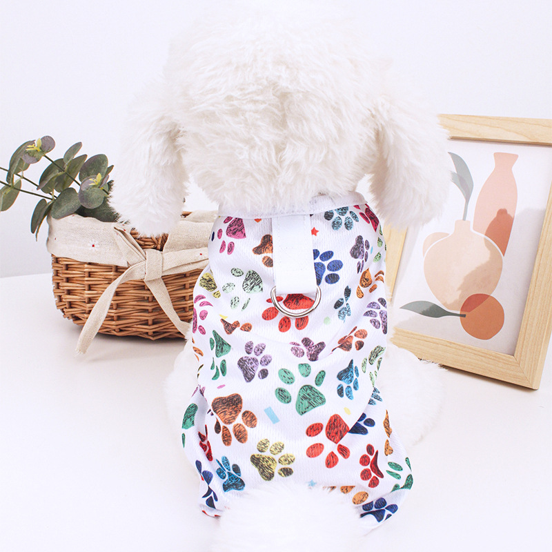 개 옷 테디 베어 봄과 여름 초박형 민소매 조끼 밧줄이있는 고양이 조끼를 당길 수 있습니다.