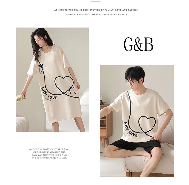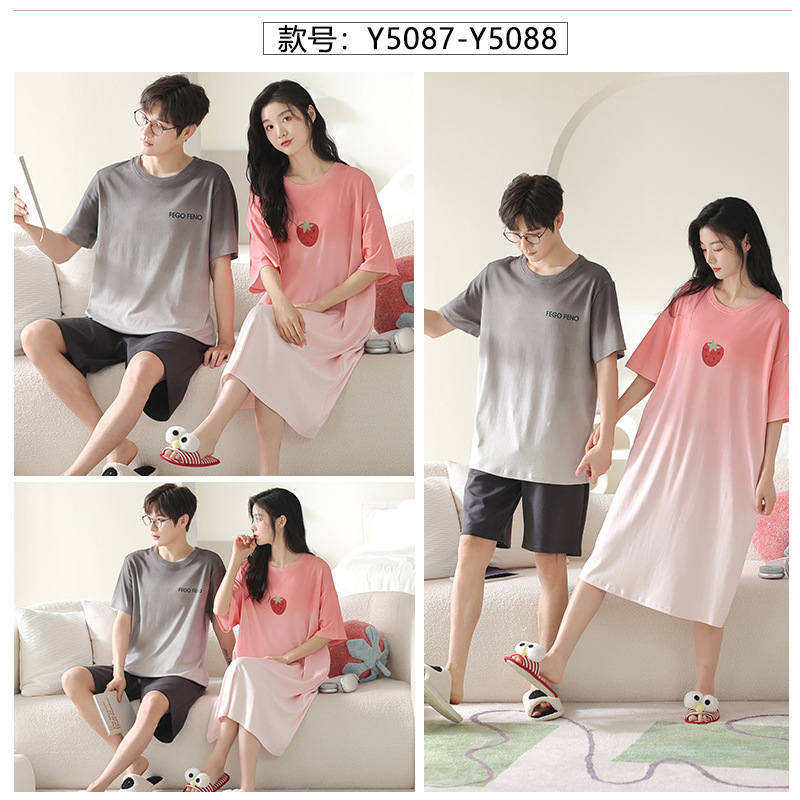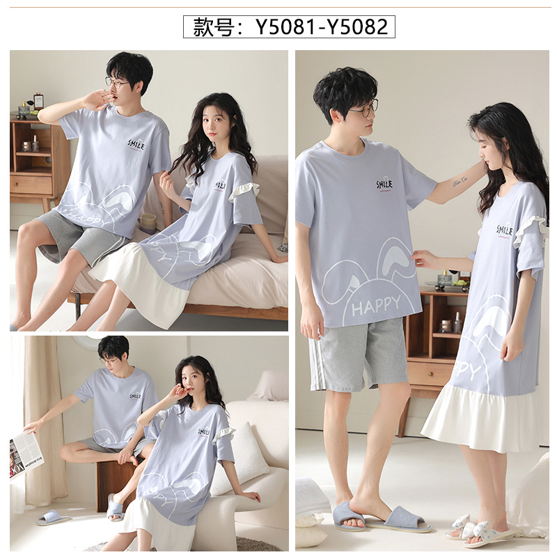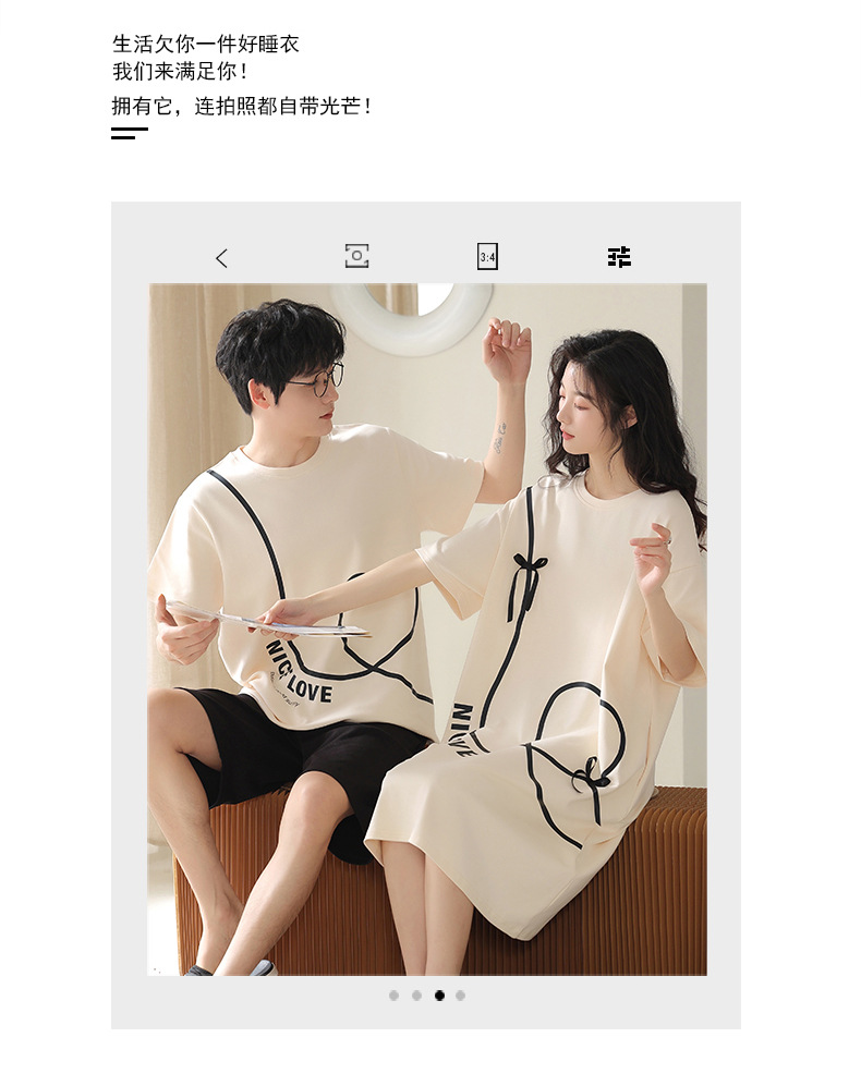커플 잠옷 남자의 여름 순면 반팔 나이트 드레스 여성의 캐주얼 느슨한 달콤한 귀여운 홈 의류 세트