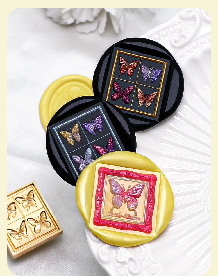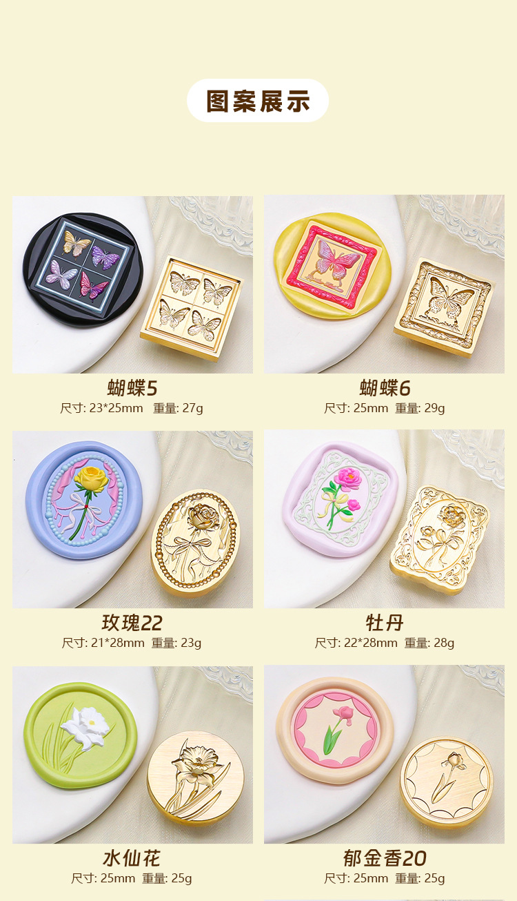 새로운 화재 페인트 씰 특수 모양의 양각 꽃 나비 케이크 구리 머리 장식 인사말 카드 손 계정 단단한 황동 도매