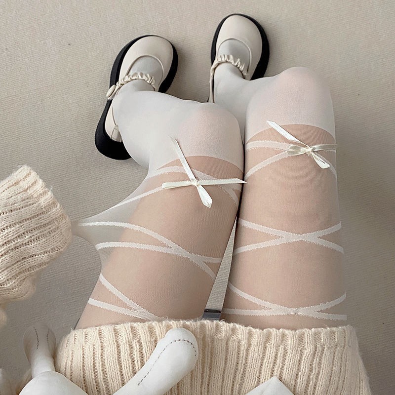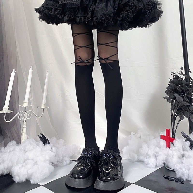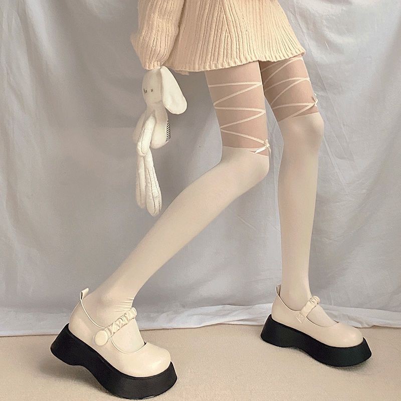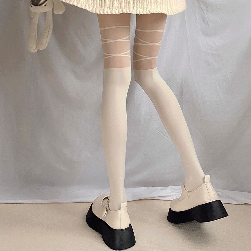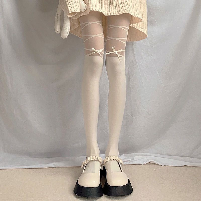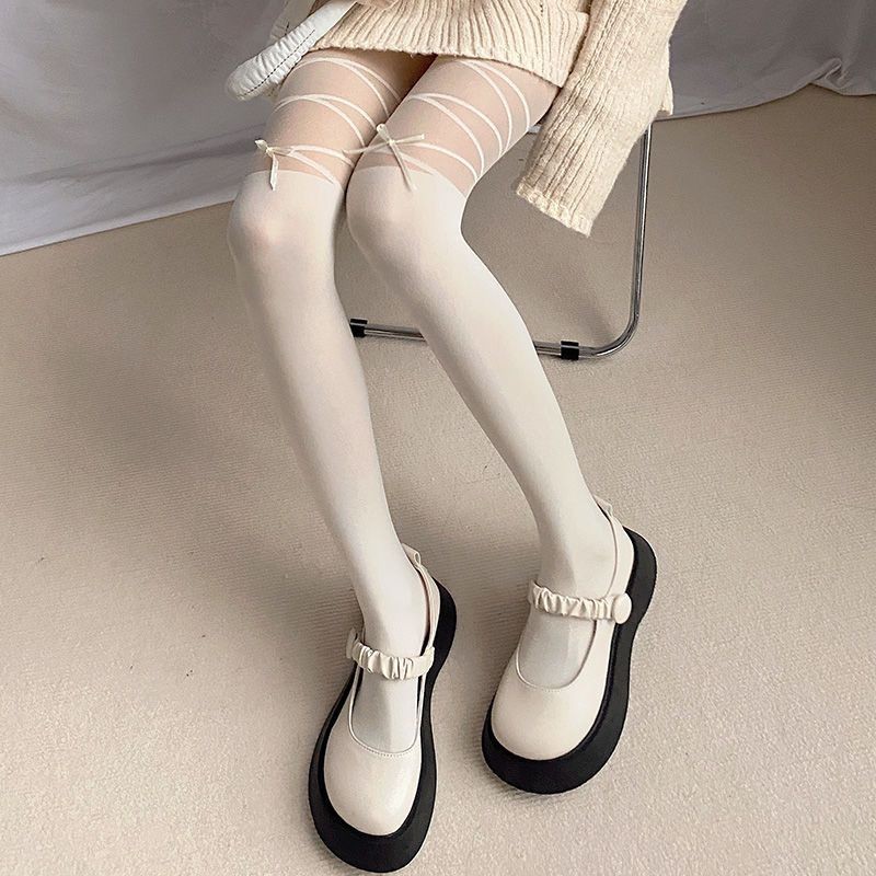 일본 검은 실크 스타킹 스트랩 활 무릎 오버 양말 Jk 화이트 안티 훅 실크 바느질 여성용 가짜 허벅지 바지 여름 봄스토어 가기