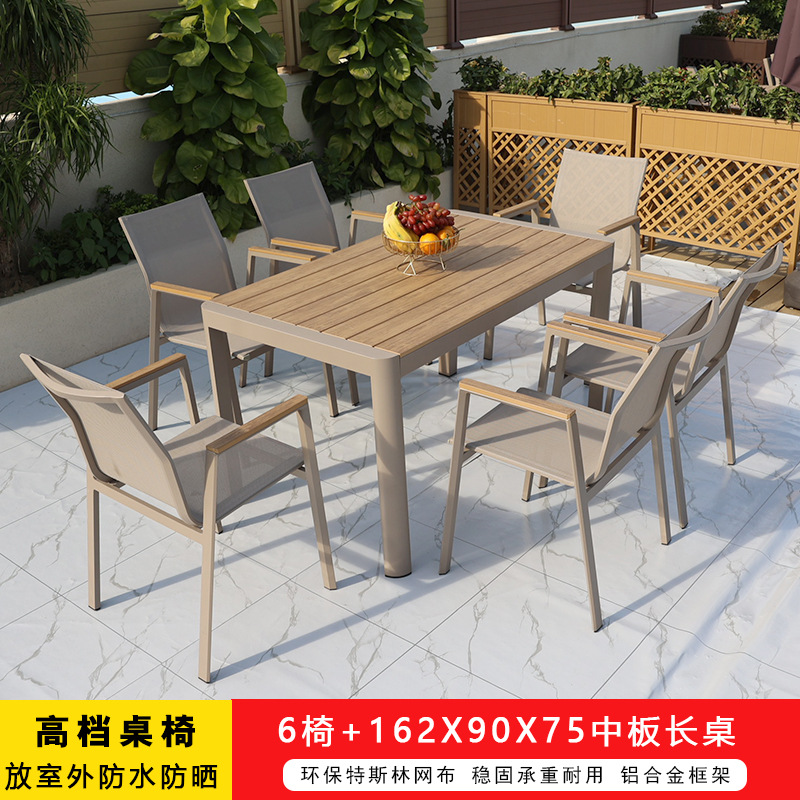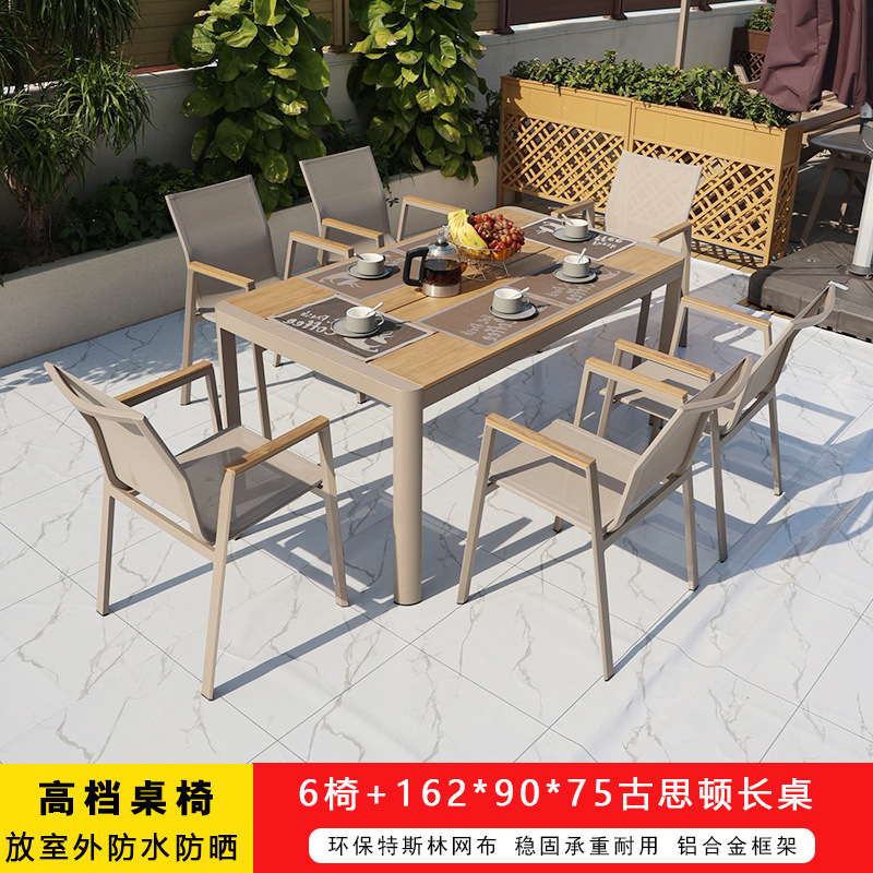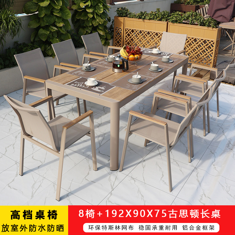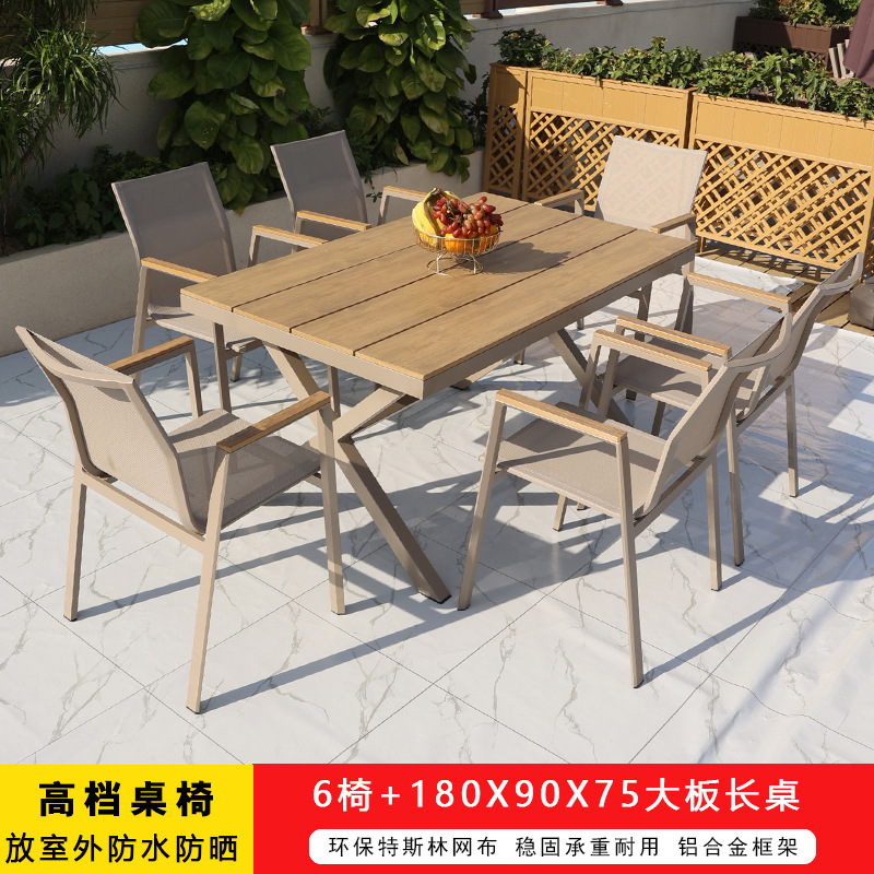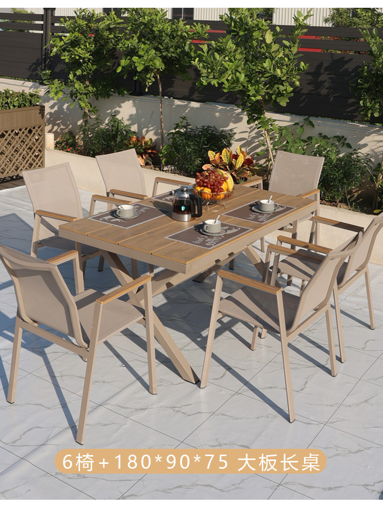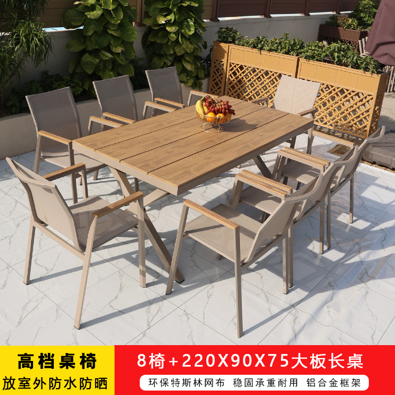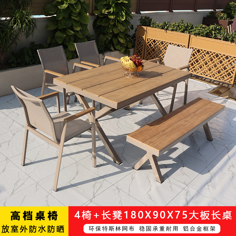 야외 테이블과 의자 조합 안뜰 정원 야외 방수 플라스틱 나무 긴 테이블 바베큐 테이블 외식 목재 발코니스토어 가기