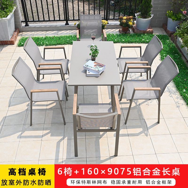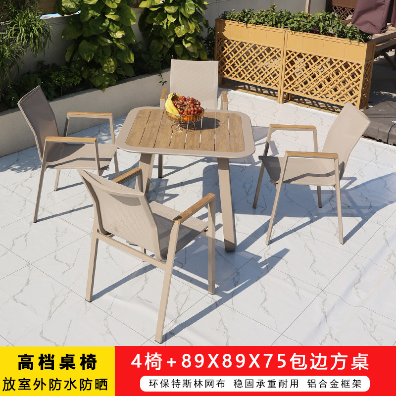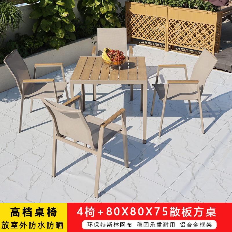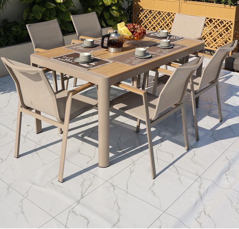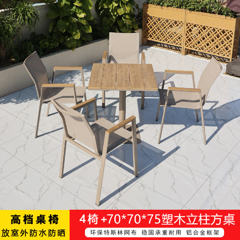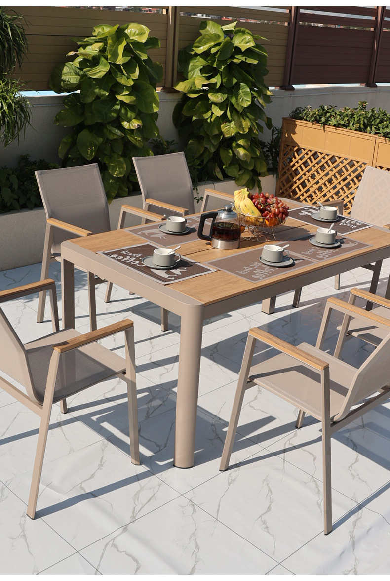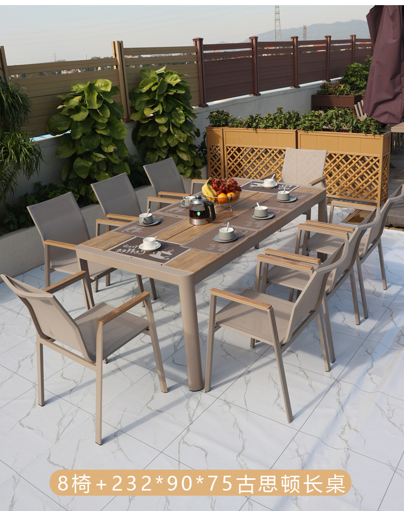 야외 테이블과 의자 조합 안뜰 정원 야외 방수 플라스틱 나무 긴 테이블 바베큐 테이블 외식 목재 발코니스토어 가기