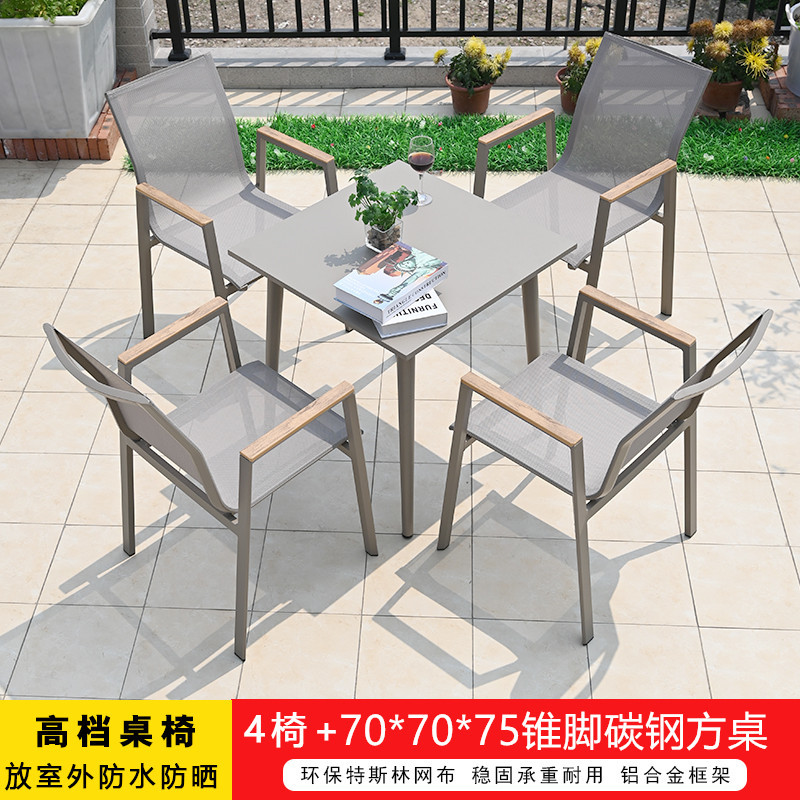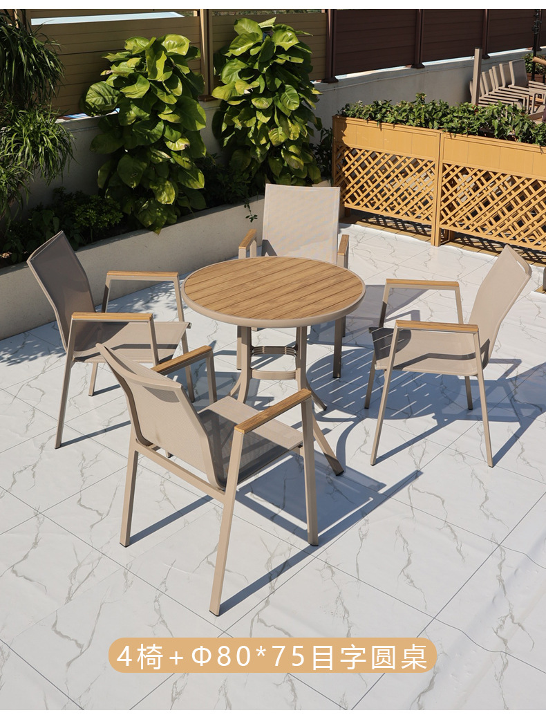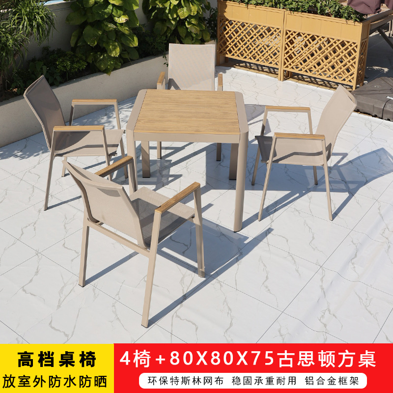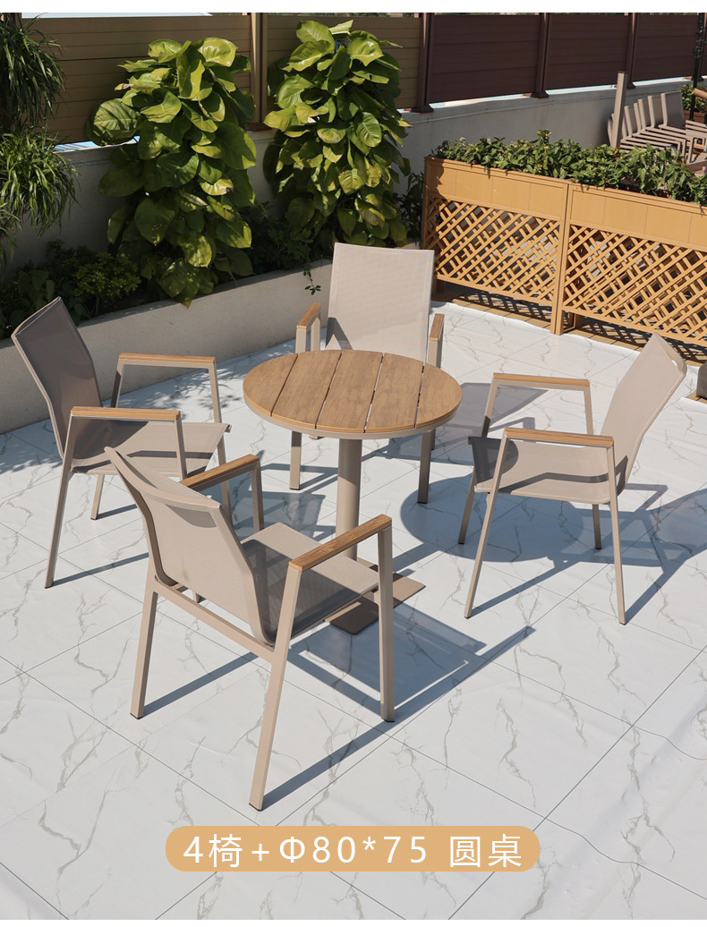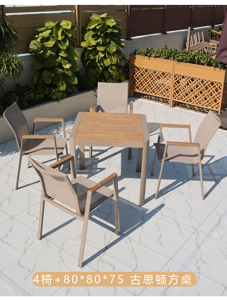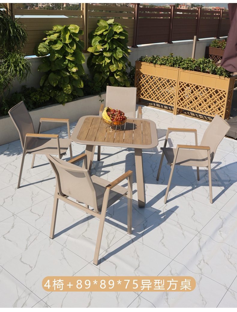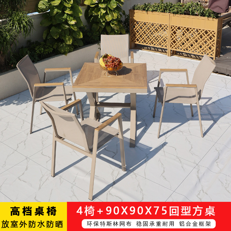 야외 테이블과 의자 조합 안뜰 정원 야외 방수 플라스틱 나무 긴 테이블 바베큐 테이블 외식 목재 발코니스토어 가기