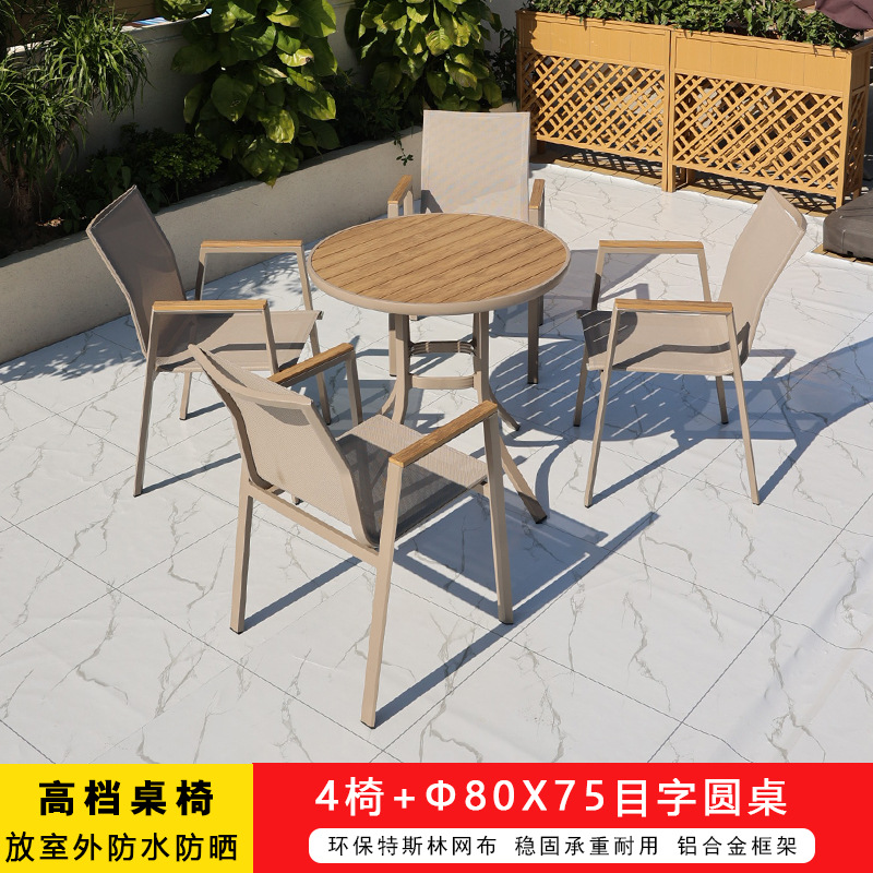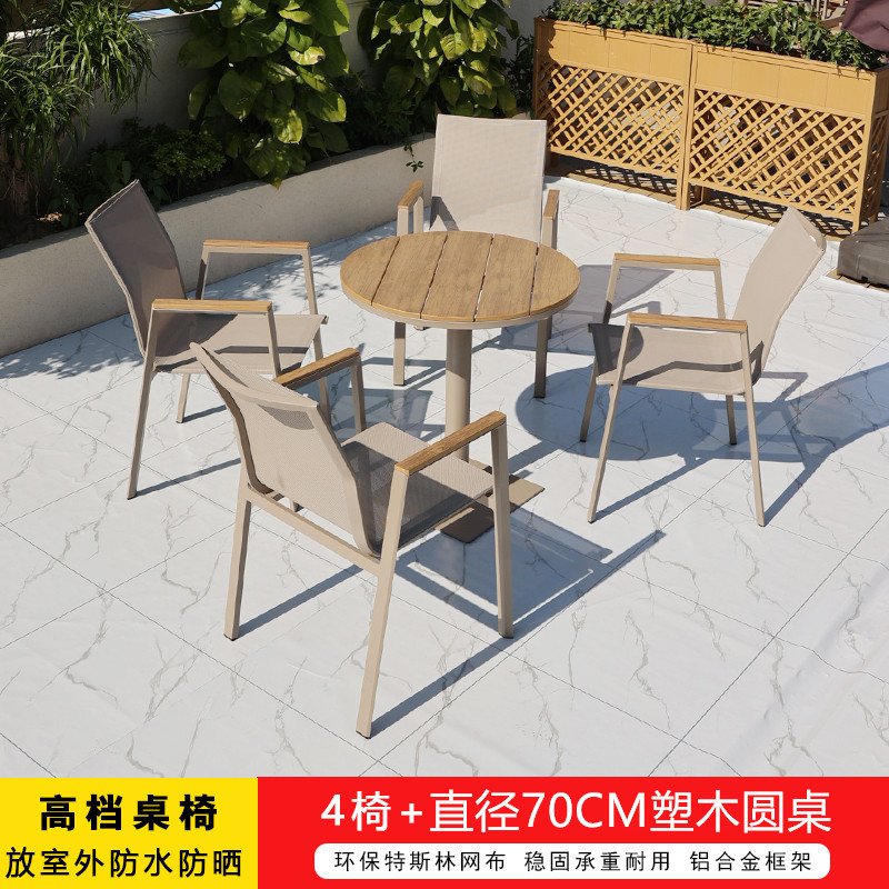 • 4 의자 직경 80CM 메쉬 단어 플라스틱 나무 원형 테이블