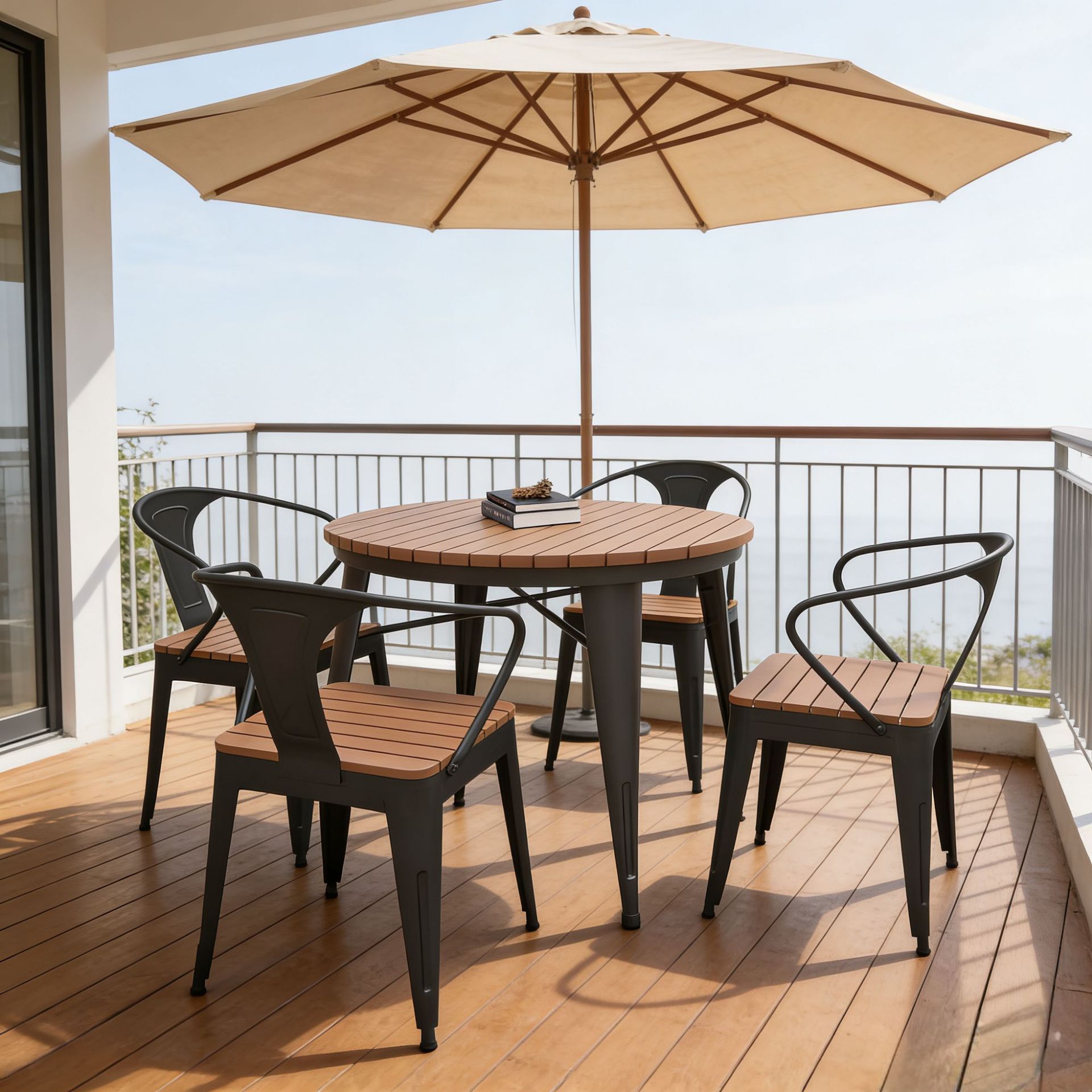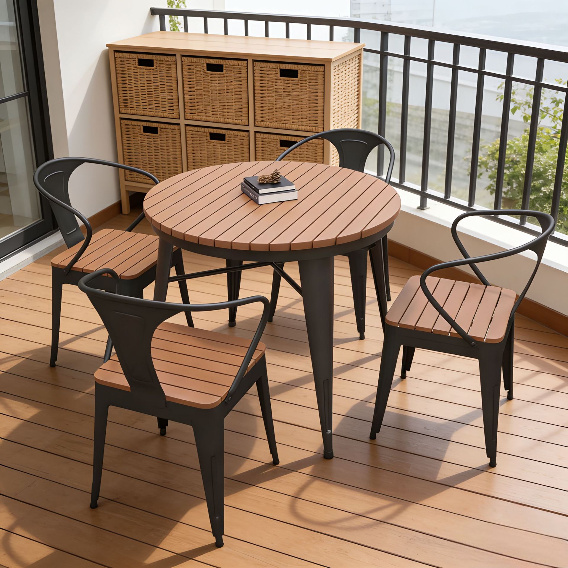 북유럽 야외 발코니 테이블과 의자 조합 야외 레저 마당 식탁 및 의자 방수 선 스크린 정원 야외 작은 원탁스토어 가기