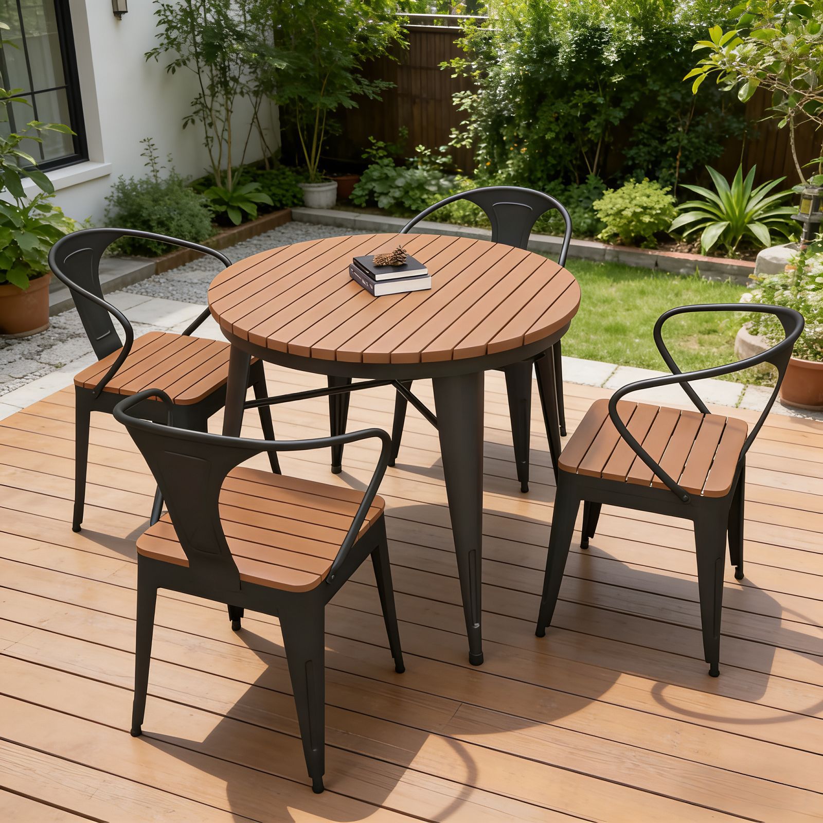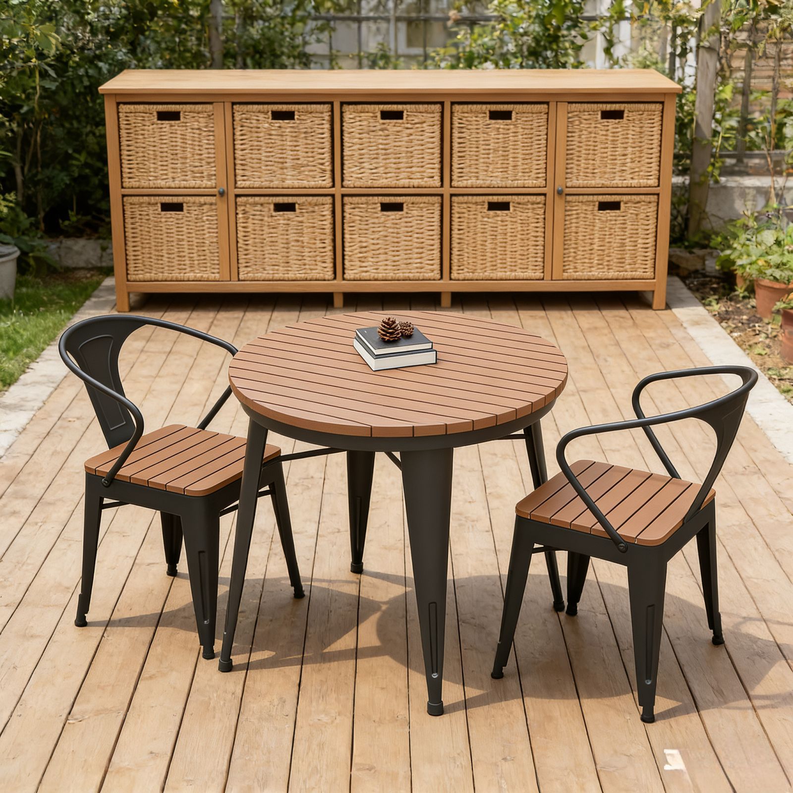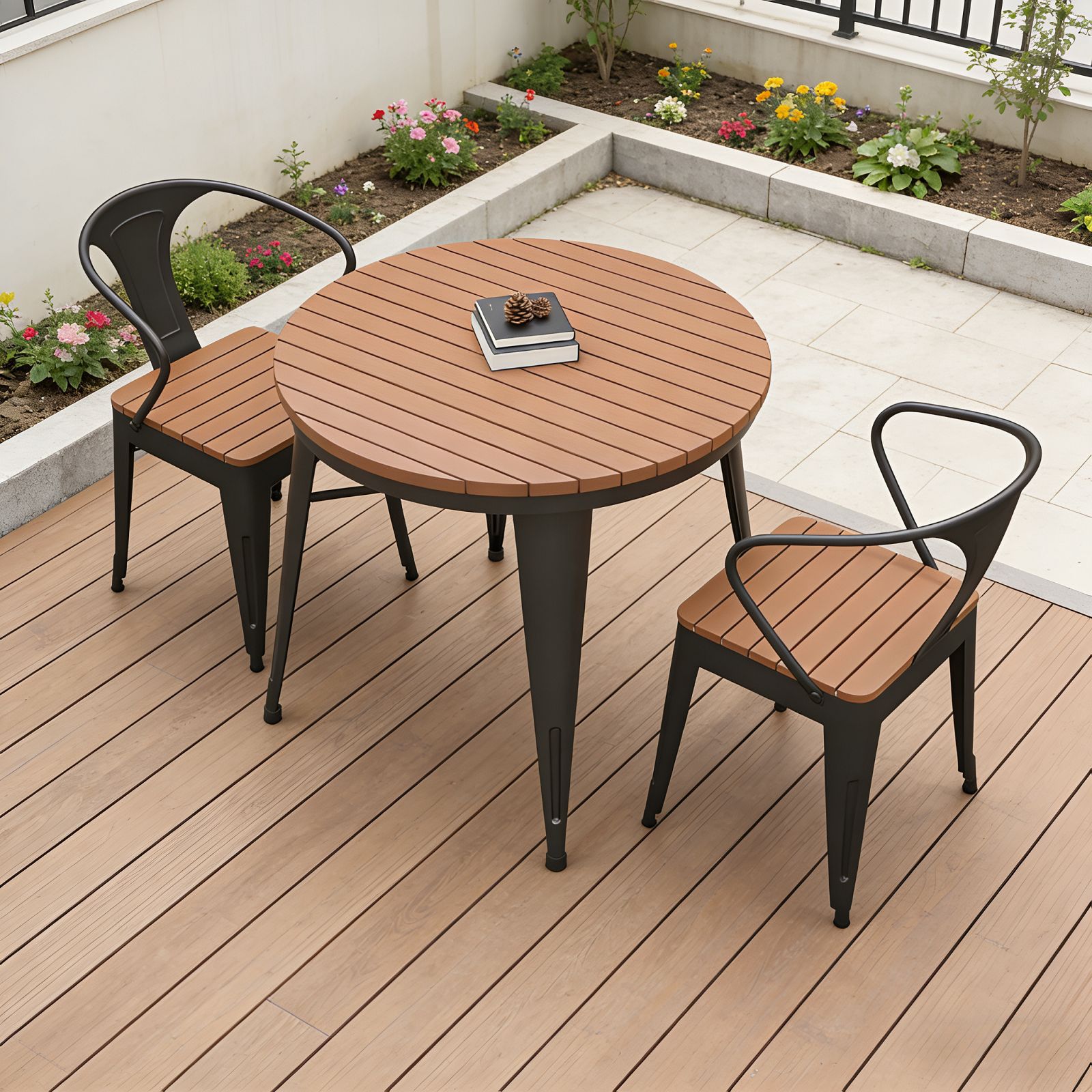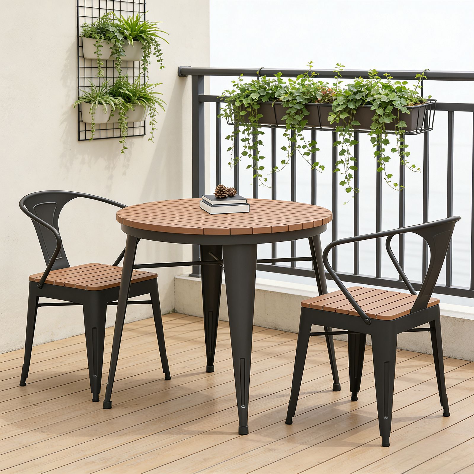 북유럽 야외 발코니 테이블과 의자 조합 야외 레저 마당 식탁 및 의자 방수 선 스크린 정원 야외 작은 원탁