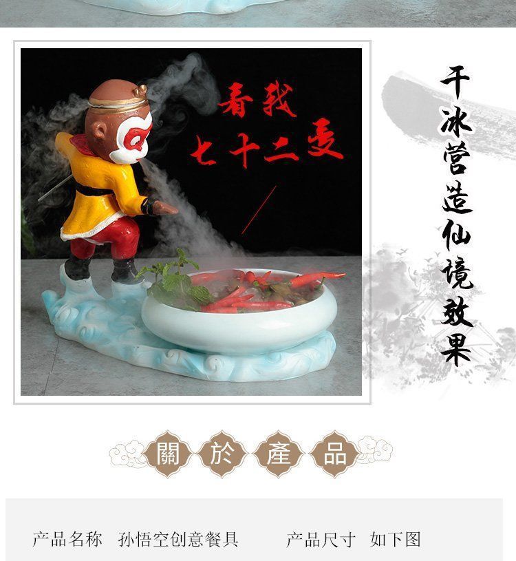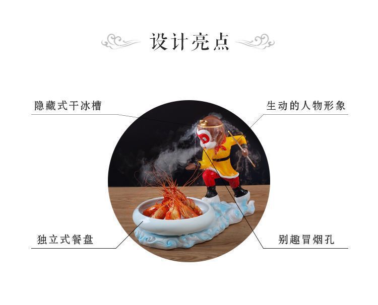 인터넷 유명 호텔 예술적 개념 드라이 아이스 식기 원숭이 킹 개성 레스토랑 테마 추천 디너 플레이트 레스토랑 크리에이티브 플레이트