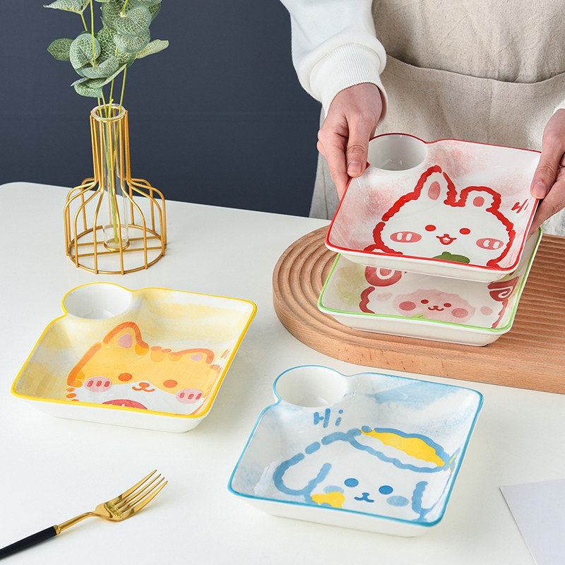 세라믹 만두 접시 일본식 식초 접시 스낵 접시 가정용 만화 아침 식사 접시 만두 디핑 접시 포함