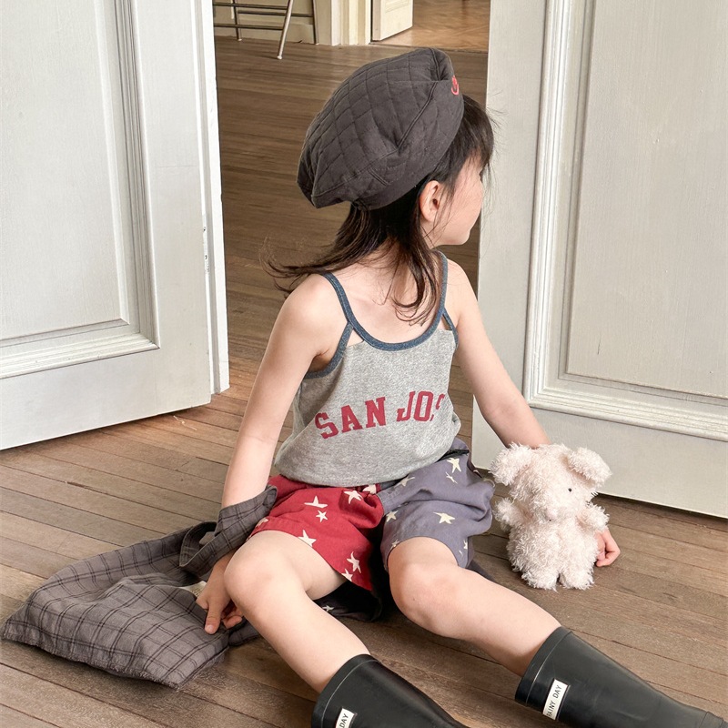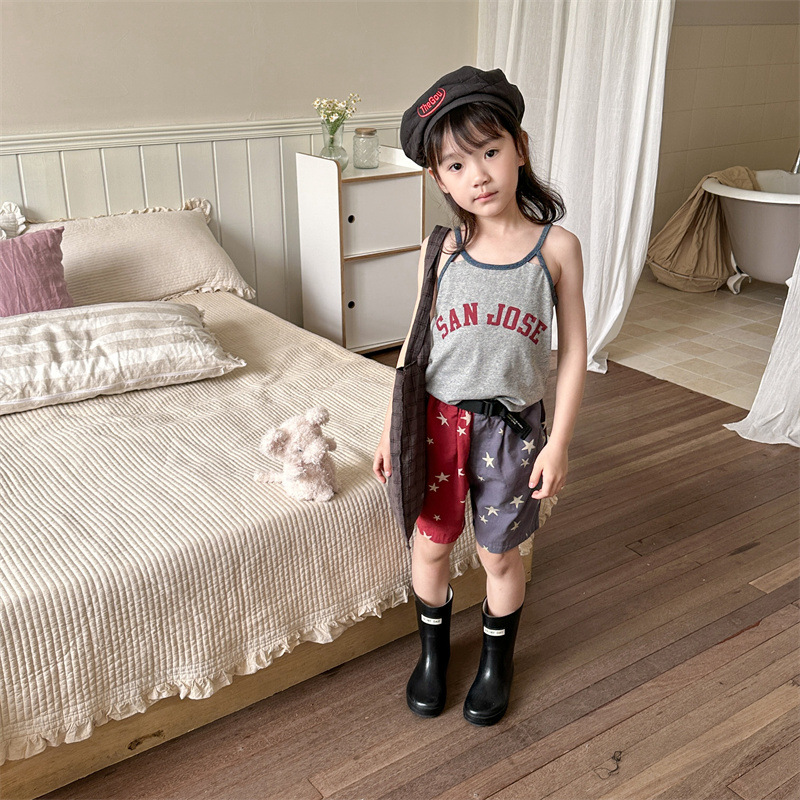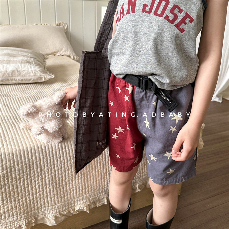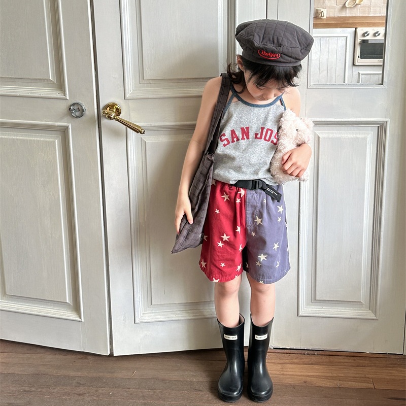 2026 한국 아동복 여름 신상품 여아 한국 스타일 여름옷 배색 반바지 아동 워싱 코튼 팬츠 5232