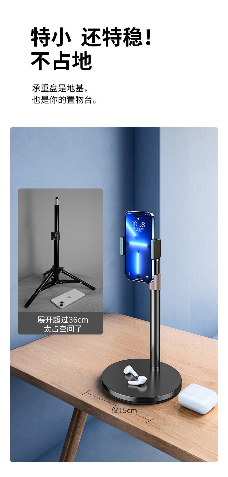 • 흰색 45cm, 회전, 리프팅 및 위에서 촬영하여 휴대폰에 사용할 수 있습니다.