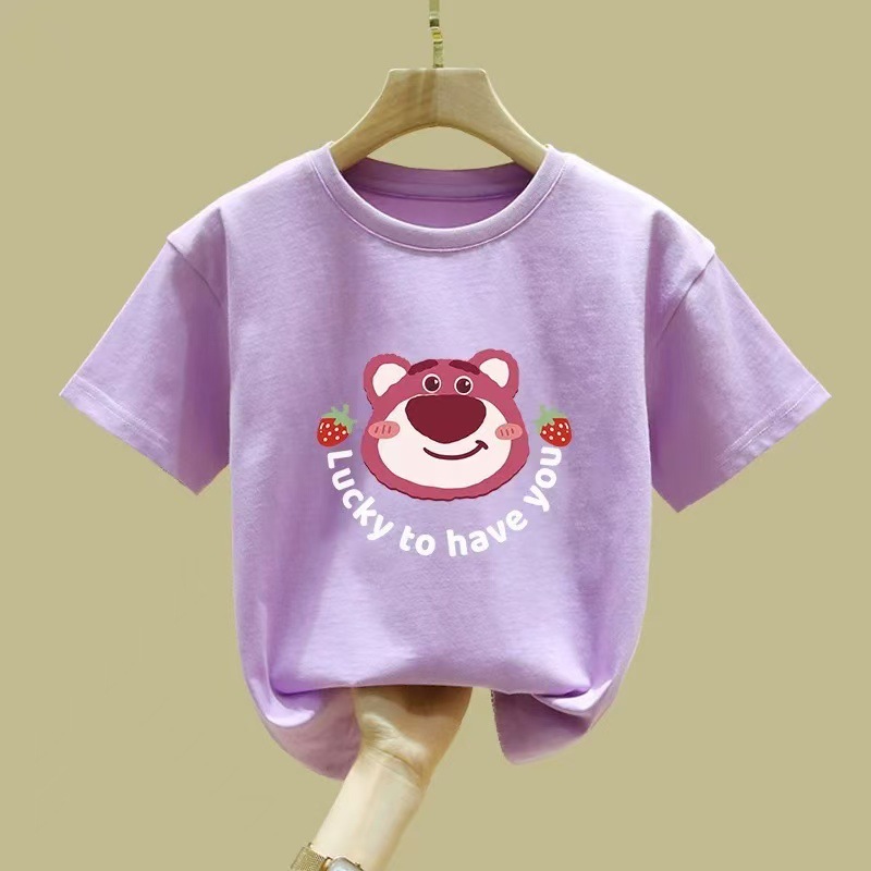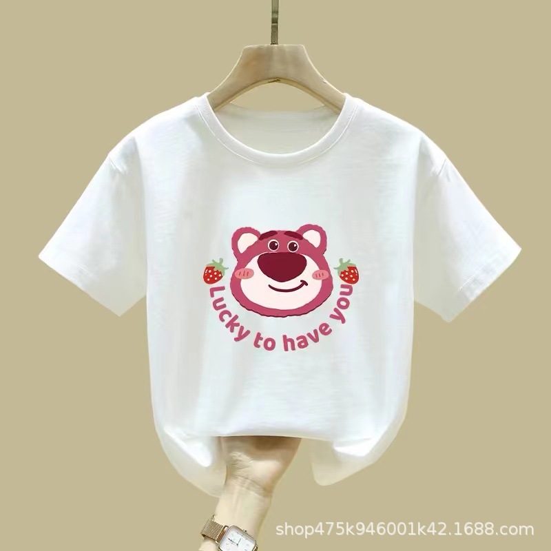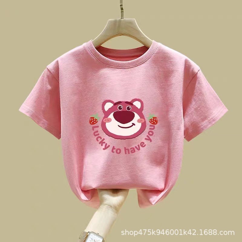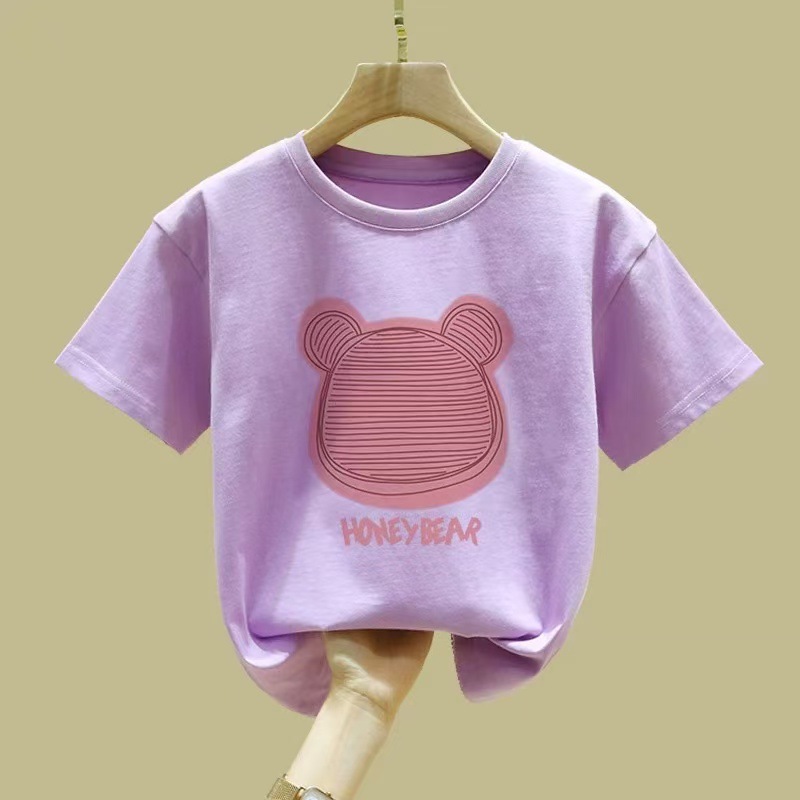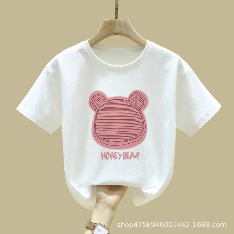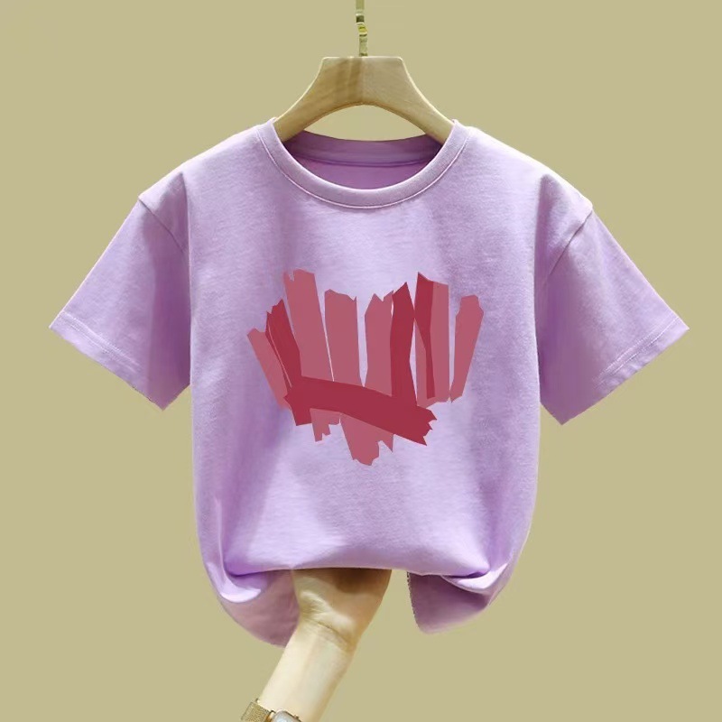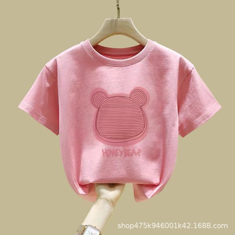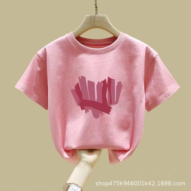 여아 반팔 티셔츠 순면 2026년 신상 여름 스타일 핑크색 아동복 세련된 의류 중대형 아동 반팔스토어 가기