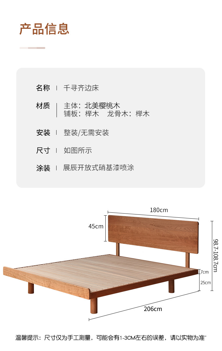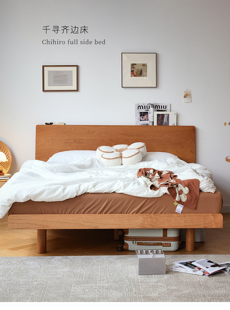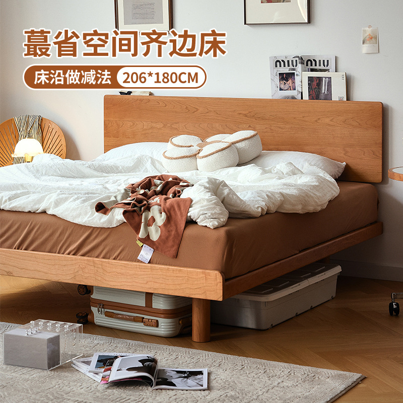 체리나무 침대, 소형 가구용 얇은 침대 헤드보드, 1.8m 침실용 침대, 더블 침대, 레트로 원목 침대, 목공 결합 구조