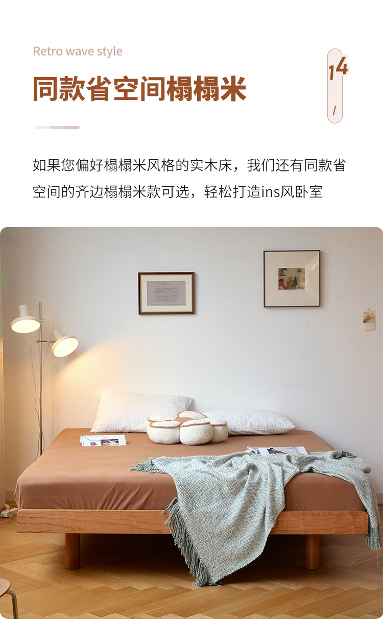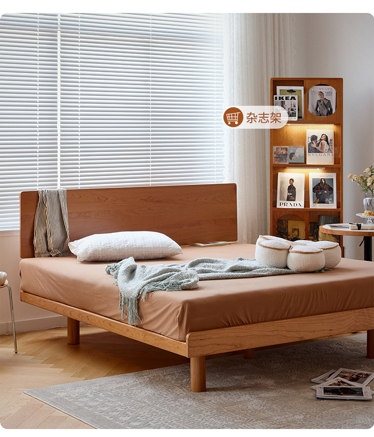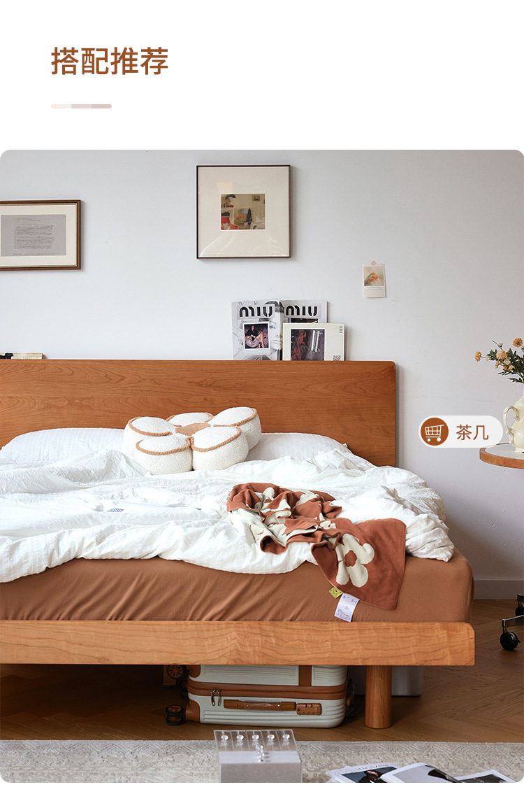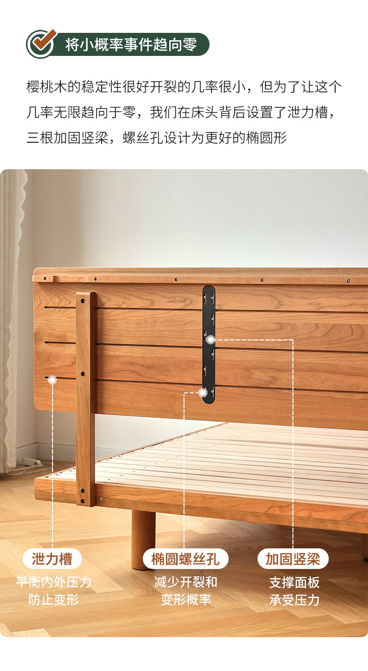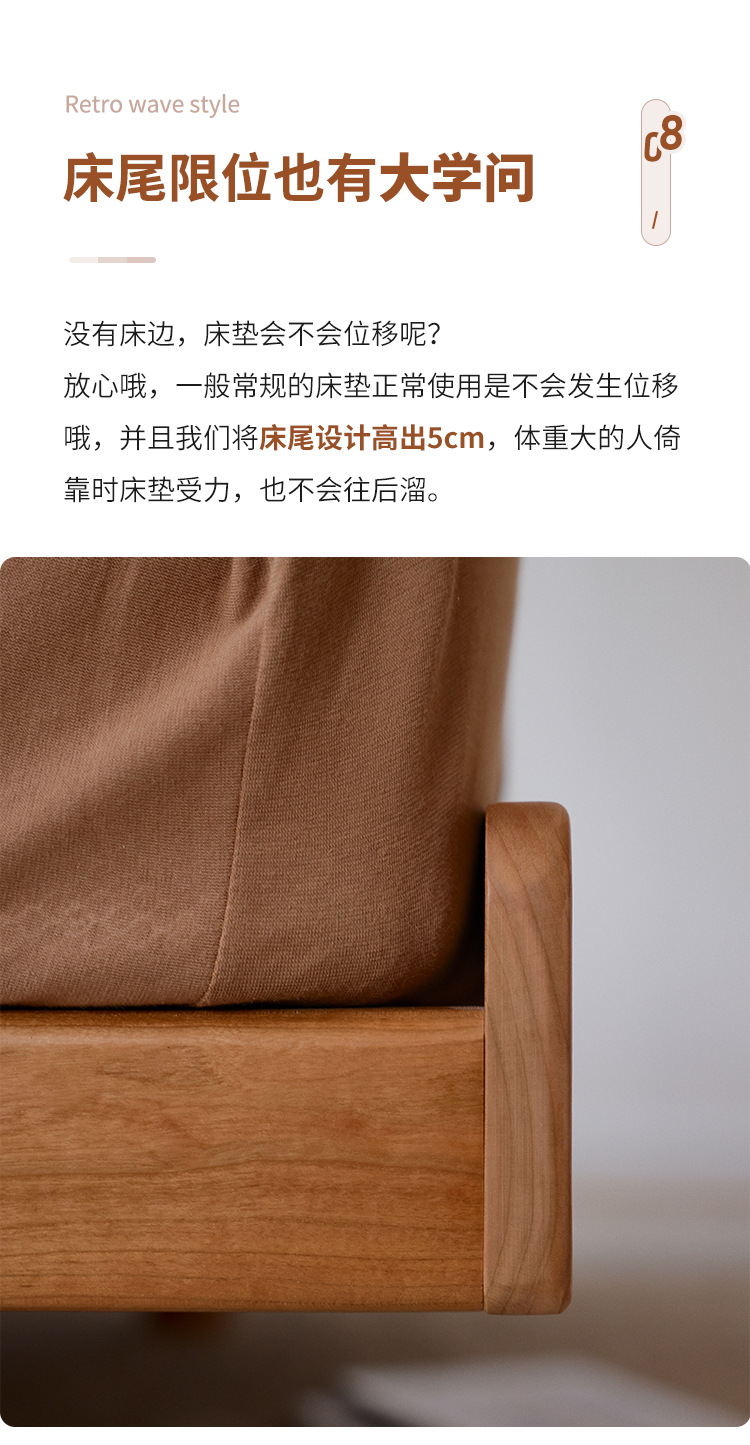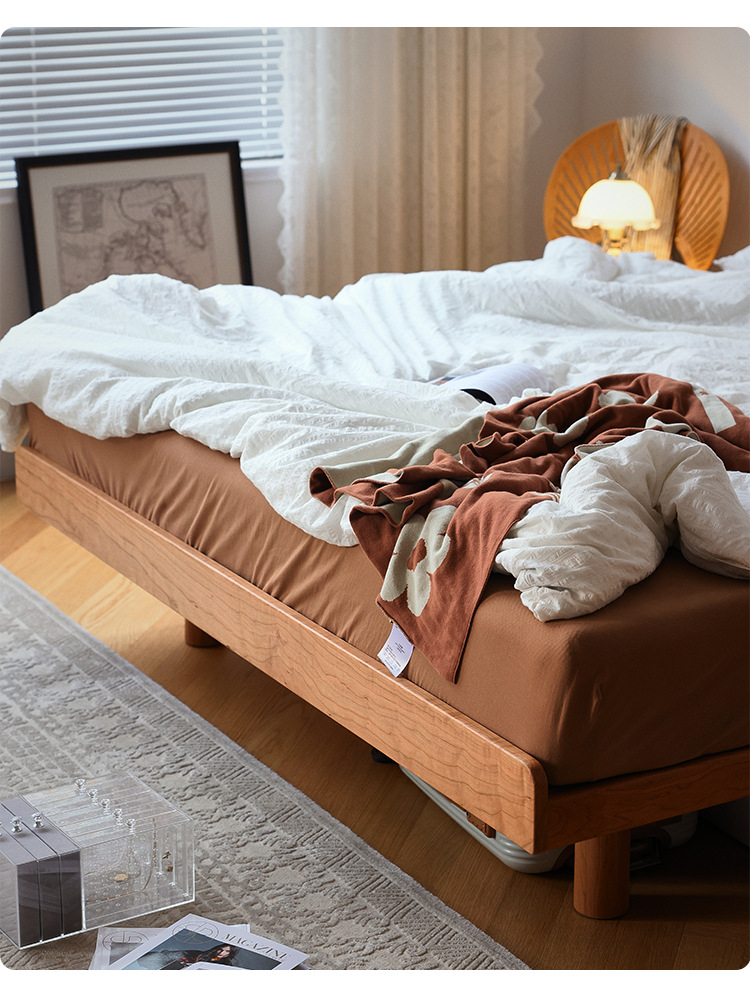 체리나무 침대, 소형 가구용 얇은 침대 헤드보드, 1.8m 침실용 침대, 더블 침대, 레트로 원목 침대, 목공 결합 구조스토어 가기
