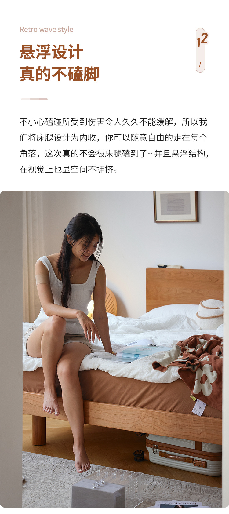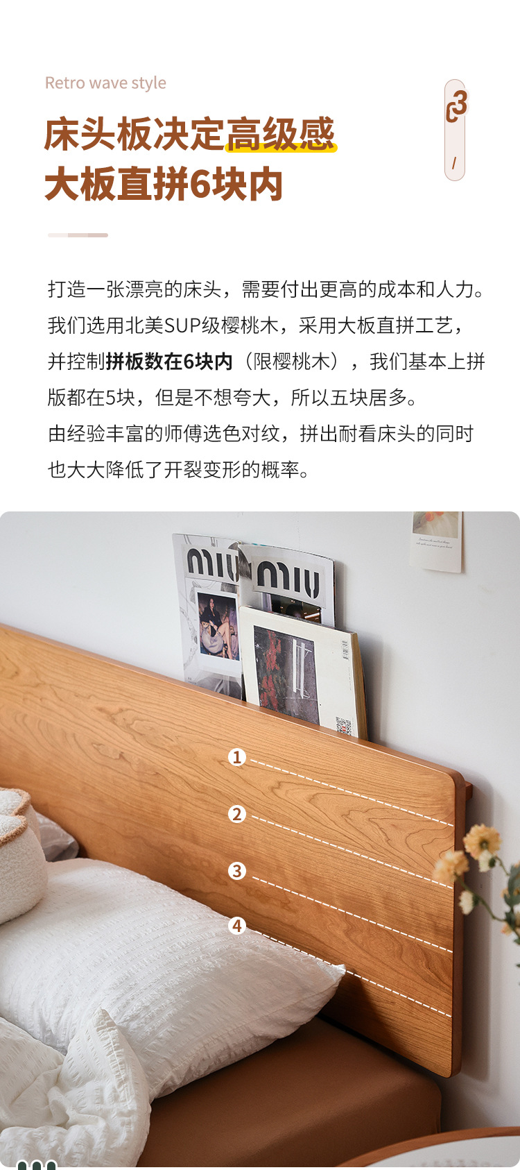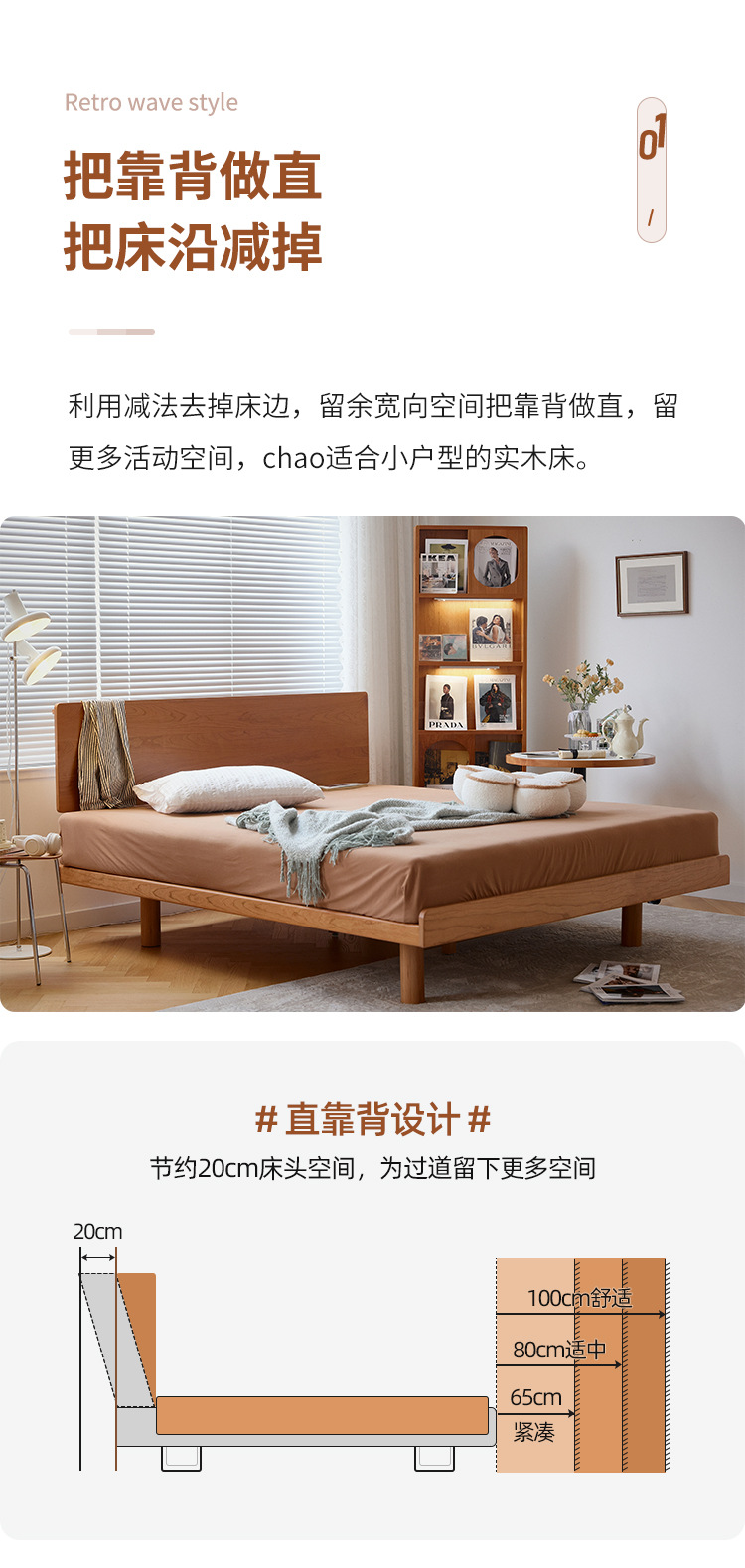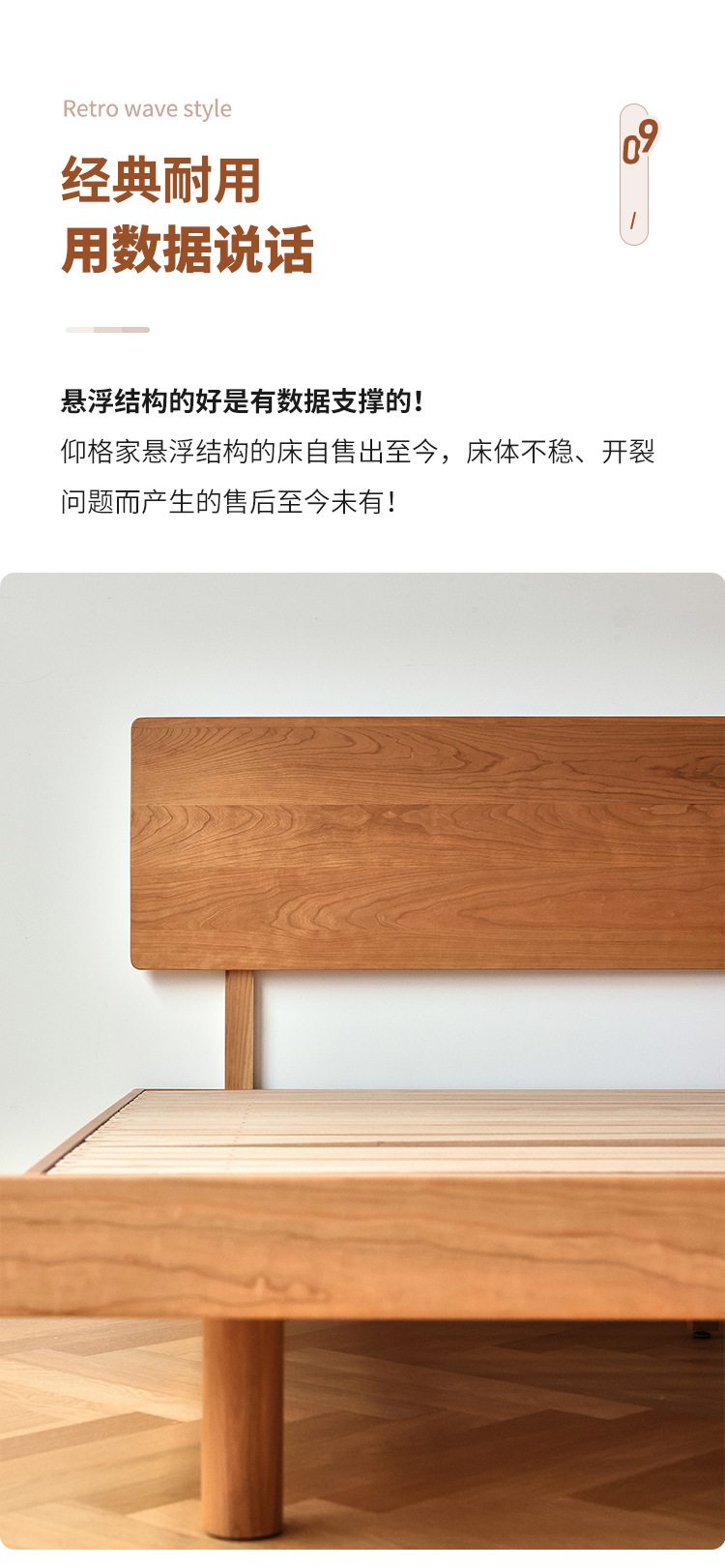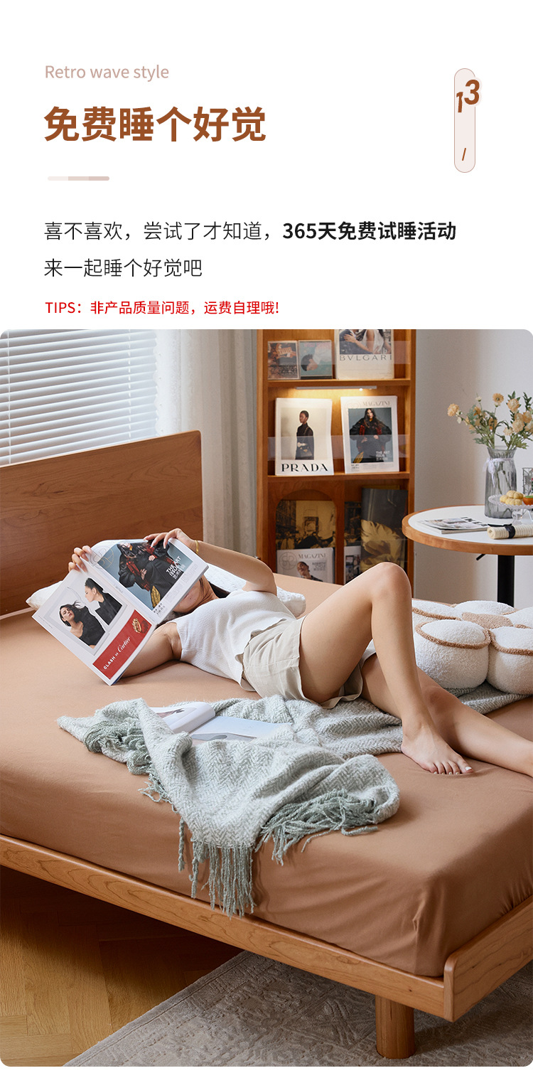 체리나무 침대, 소형 가구용 얇은 침대 헤드보드, 1.8m 침실용 침대, 더블 침대, 레트로 원목 침대, 목공 결합 구조스토어 가기