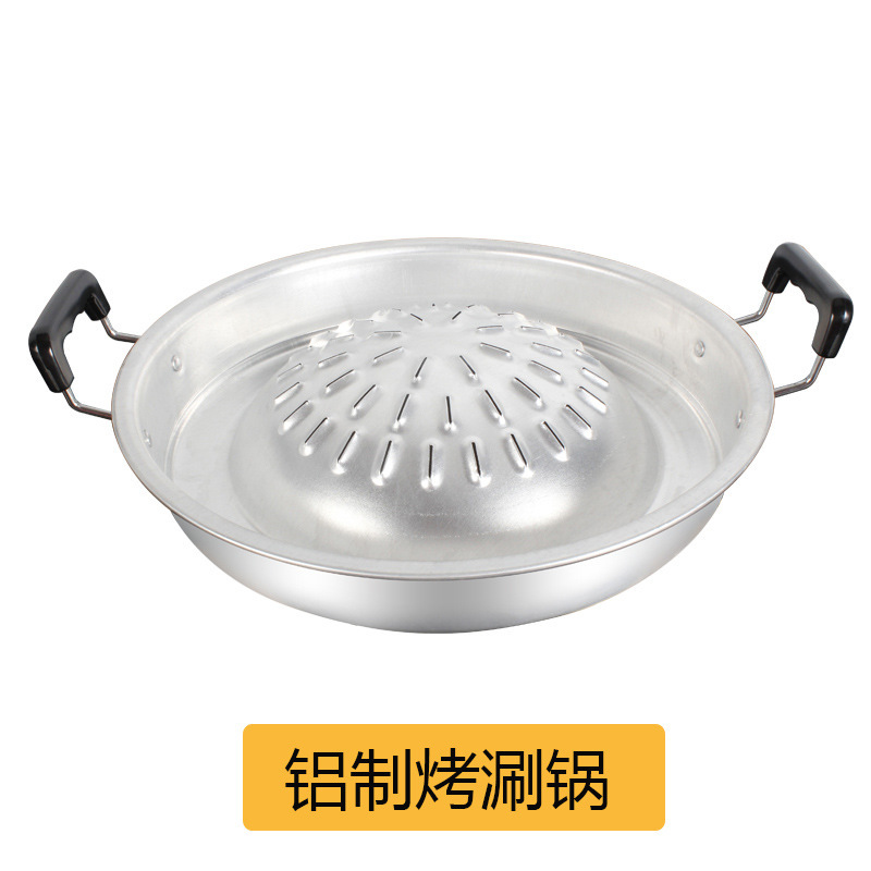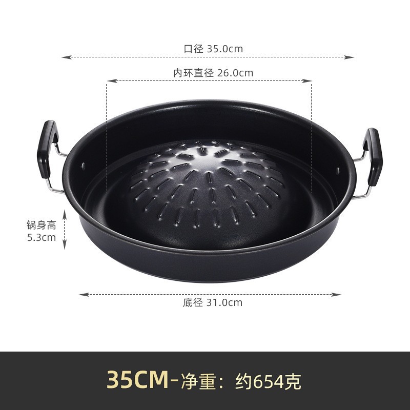泰式火锅一体式 韩式烤肉炉户外不锈钢烧烤碳烤盘圆形烧烤店 火锅店家用桌面便携烤盘 水煎肉烤盘韩式商用 煎牛肉金针菇涮肥牛平底帽子铝锅