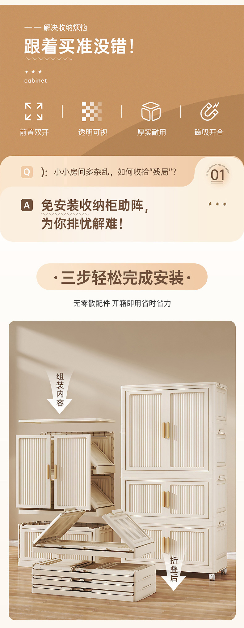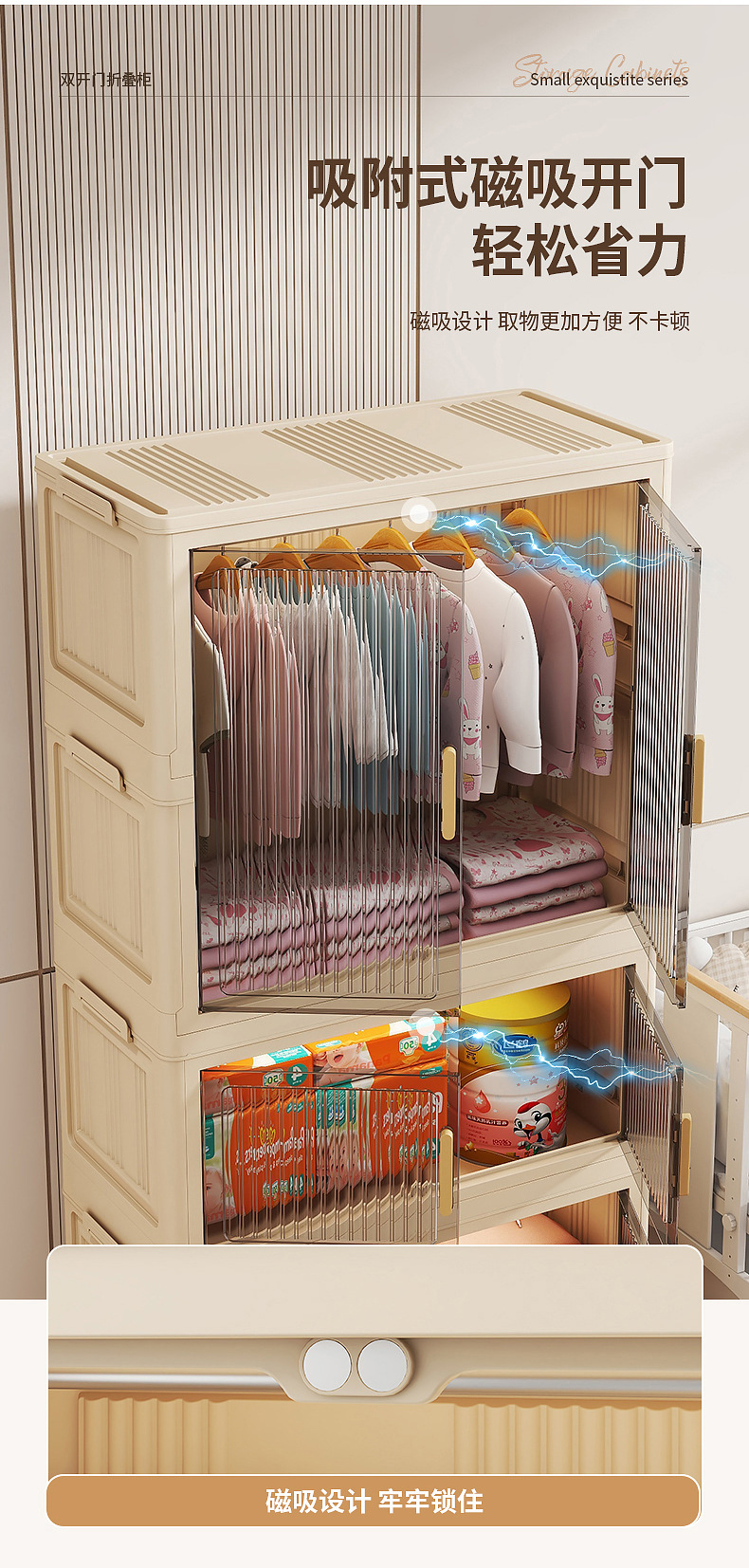 침실 가구 조립 옷장 매달린 자기 흡입 더블 도어 보관 캐비닛 접이식 저장 상자 어린이 장난감 보관