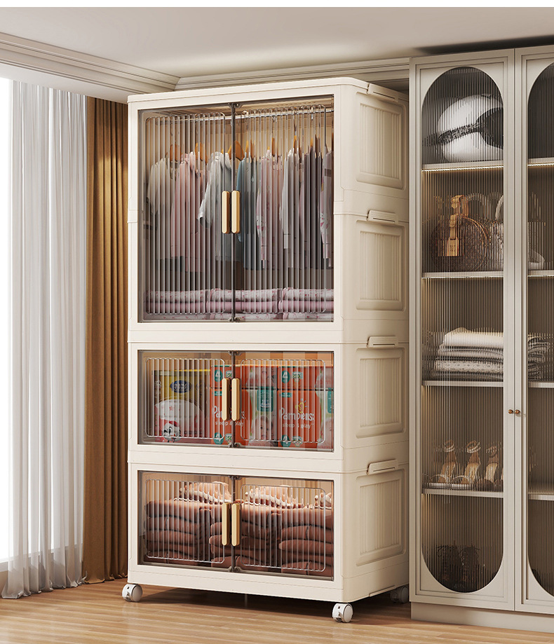 침실 가구 조립 옷장 매달린 자기 흡입 더블 도어 보관 캐비닛 접이식 저장 상자 어린이 장난감 보관스토어 가기