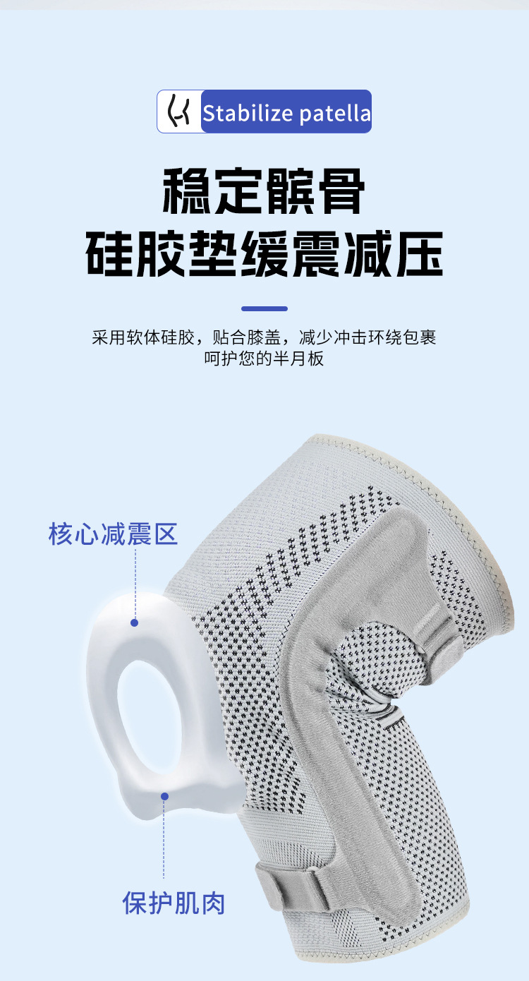 평편기로 짠 스포츠 무릎 보호대 등산 및 달리기용 반월판 보호 실리콘 충격 흡수 압박 스프링 스트랩 무릎 보호대스토어 가기