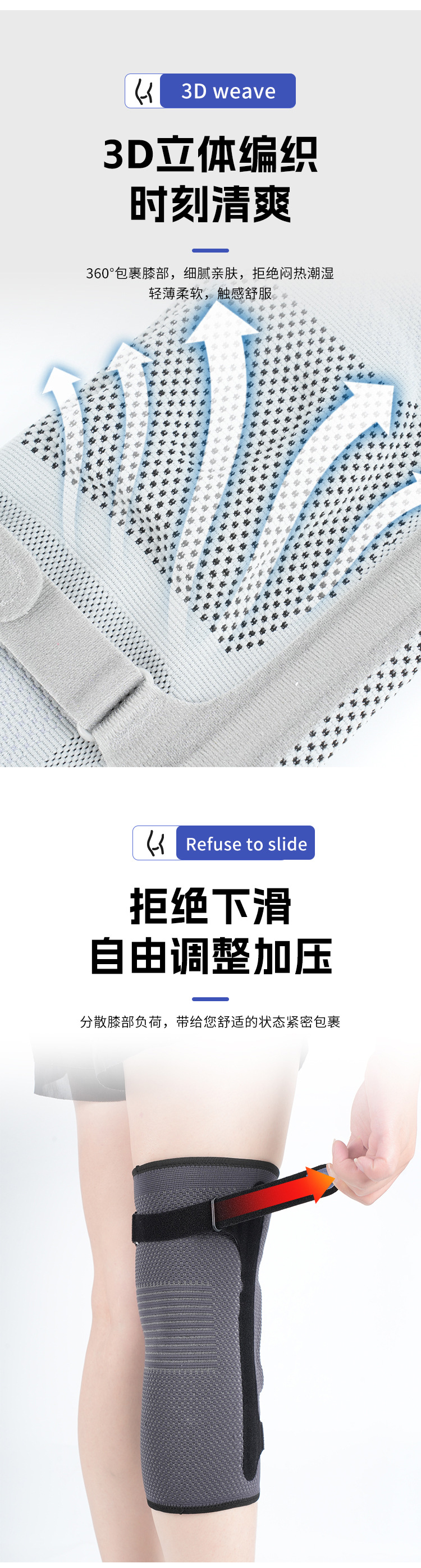 평편기로 짠 스포츠 무릎 보호대 등산 및 달리기용 반월판 보호 실리콘 충격 흡수 압박 스프링 스트랩 무릎 보호대