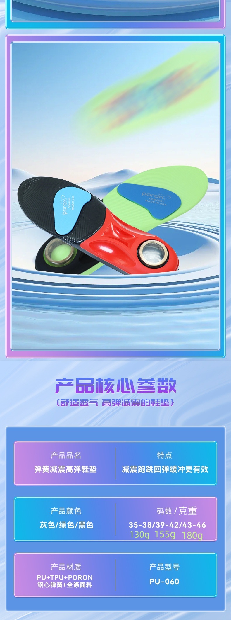 2025 새로운 고탄성 충격 흡수 하이 엔드 스프링 스포츠 깔창 국경 간 전자 상거래 도매 PU 깔창 Poron 충격 흡수스토어 가기