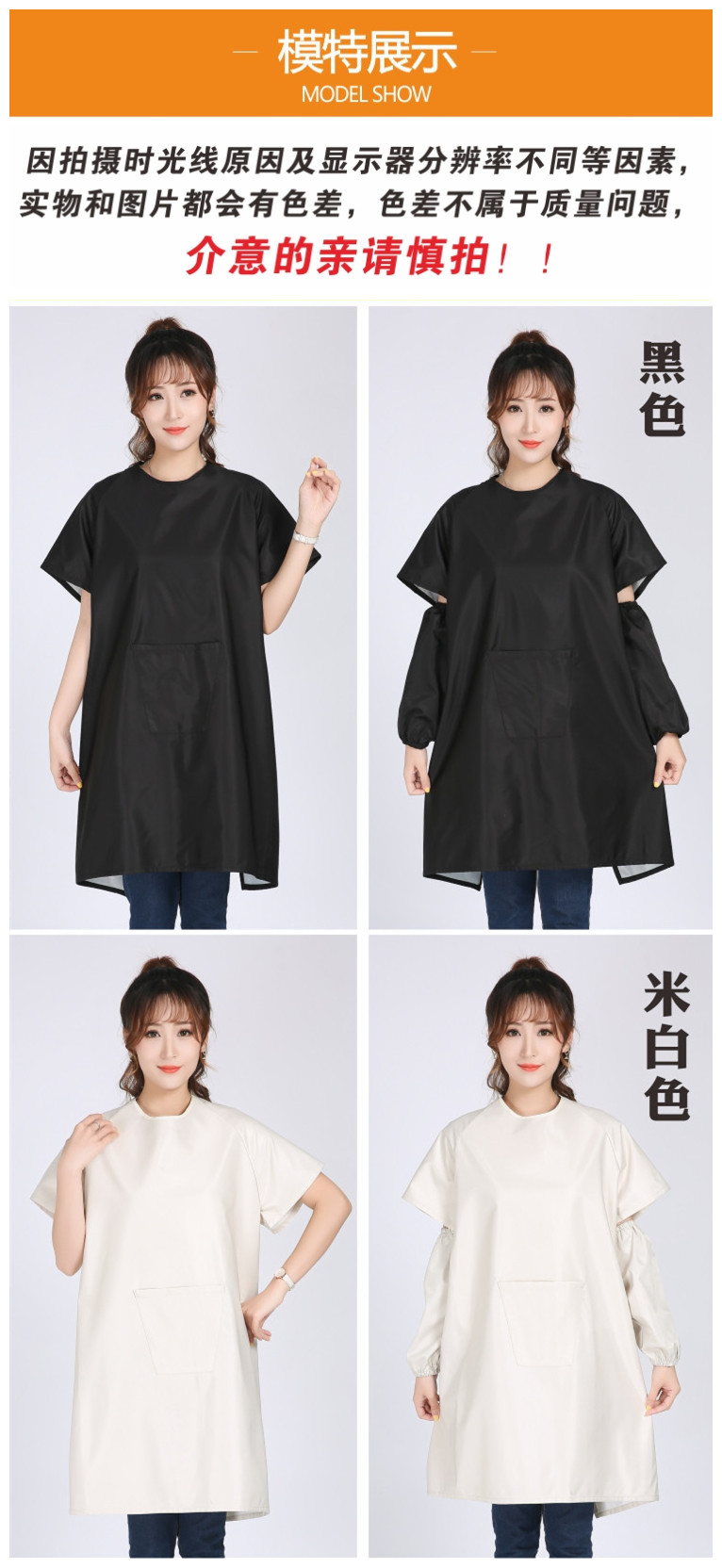 ✅ 방수 및 방유 반팔 작업복 성인용 해산물 가게 신선육 가게 작업복 반팔 앞치마 남녀 공용
