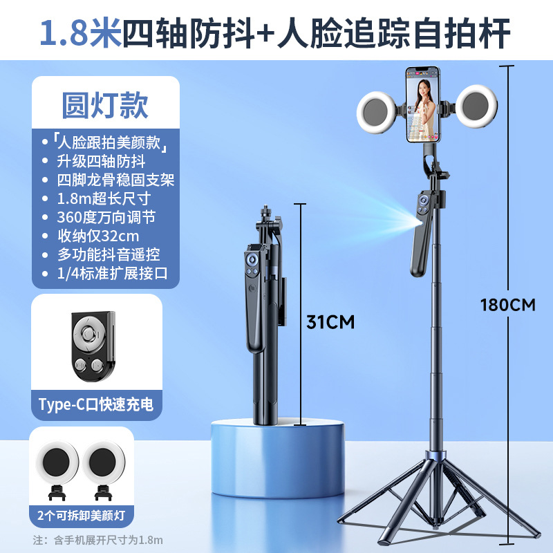 以下为R29详情,R29与B181的主要区别在于,R29的戴手机夹臂支持水平360度旋转,与我们的R12(不在此链接中)相比,R12多了手机夹可俯仰270度旋转,R29和B181则没有。R12与R29和B181相比,少了人脸识别自动跟踪的功能。三者都为1.8m四脚杆
