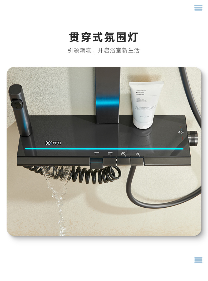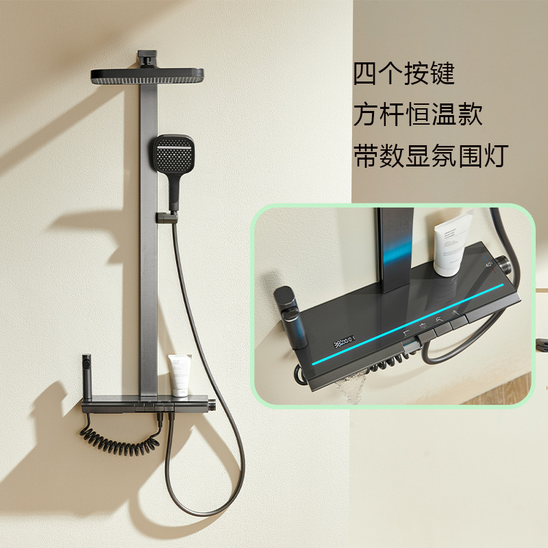온도 조절 디지털 디스플레이 샤워 헤드 세트 가정용 전체 구리 욕실 레인 샤워 헤드 회색 욕실 부스터 수도꼭지스토어 가기