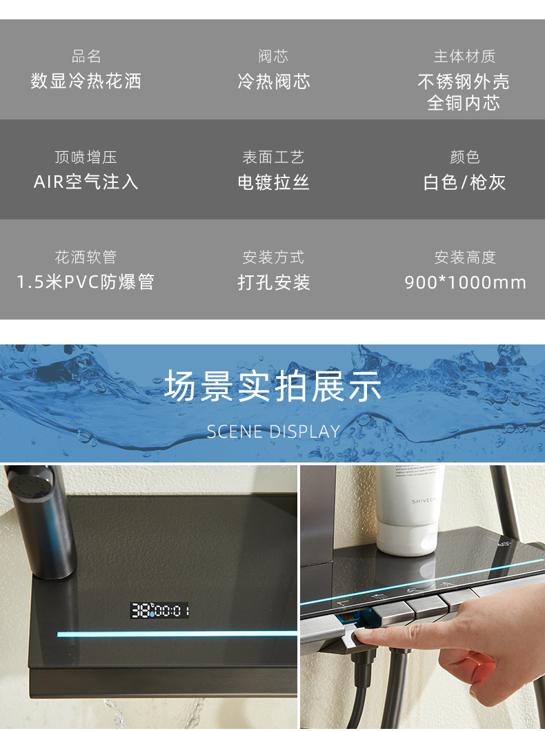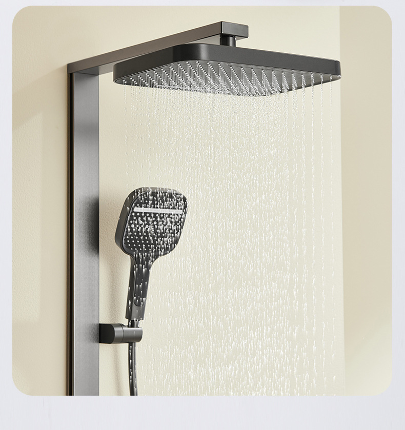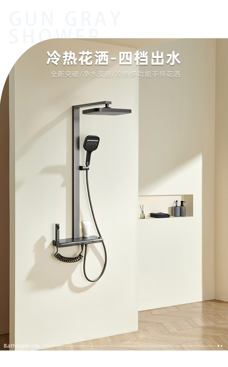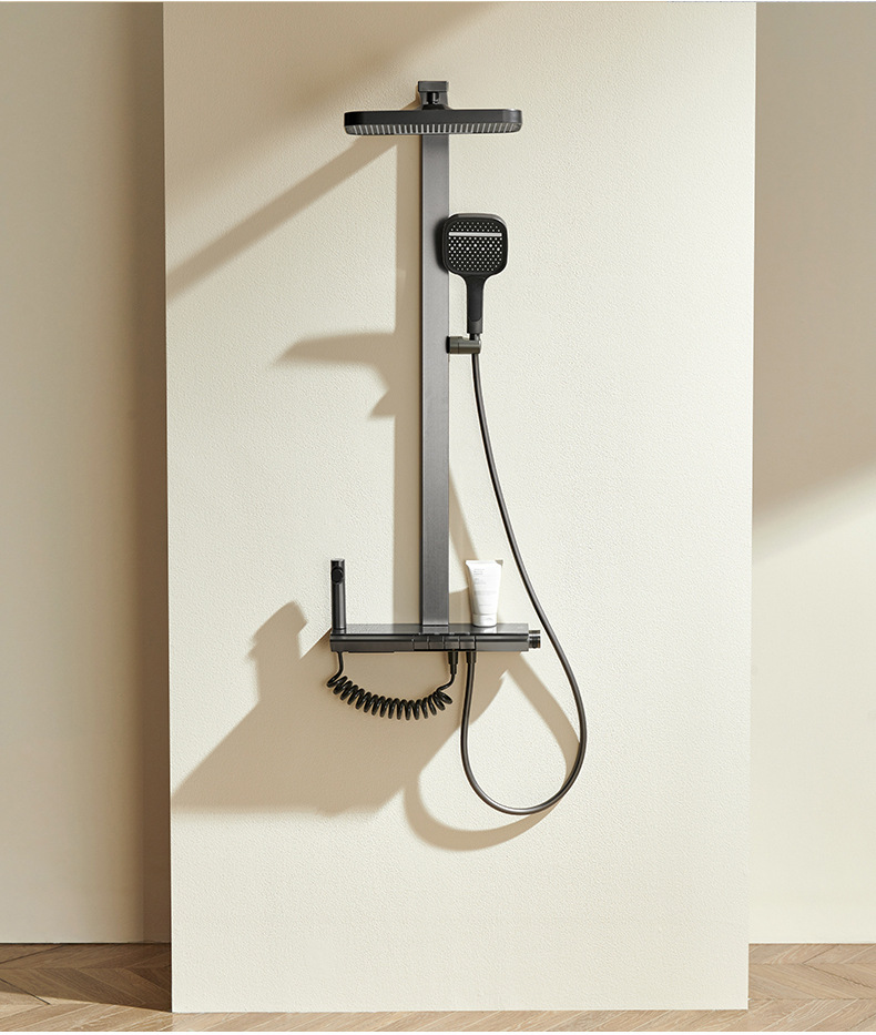 온도 조절 디지털 디스플레이 샤워 헤드 세트 가정용 전체 구리 욕실 레인 샤워 헤드 회색 욕실 부스터 수도꼭지