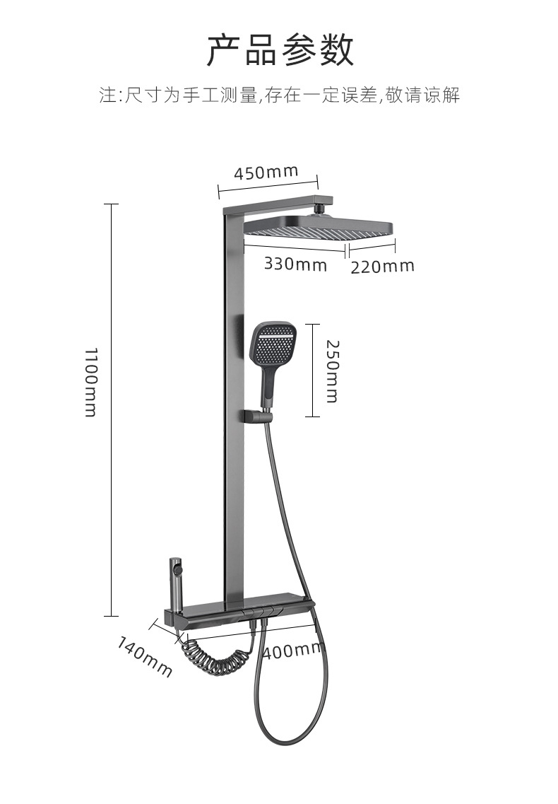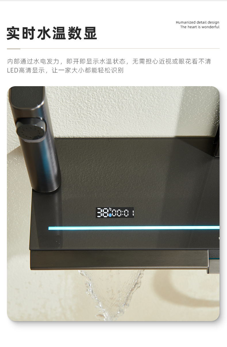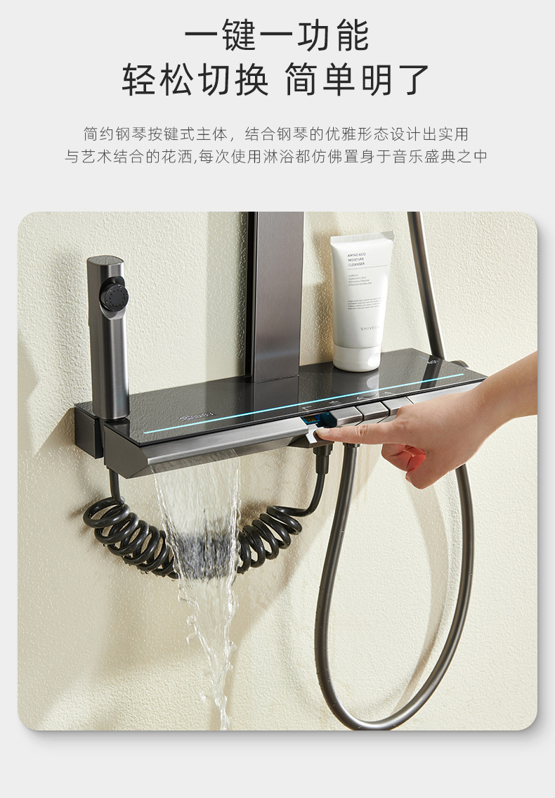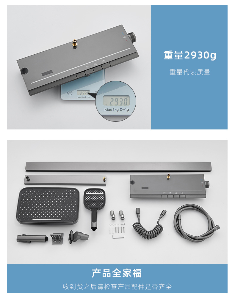 온도 조절 디지털 디스플레이 샤워 헤드 세트 가정용 전체 구리 욕실 레인 샤워 헤드 회색 욕실 부스터 수도꼭지