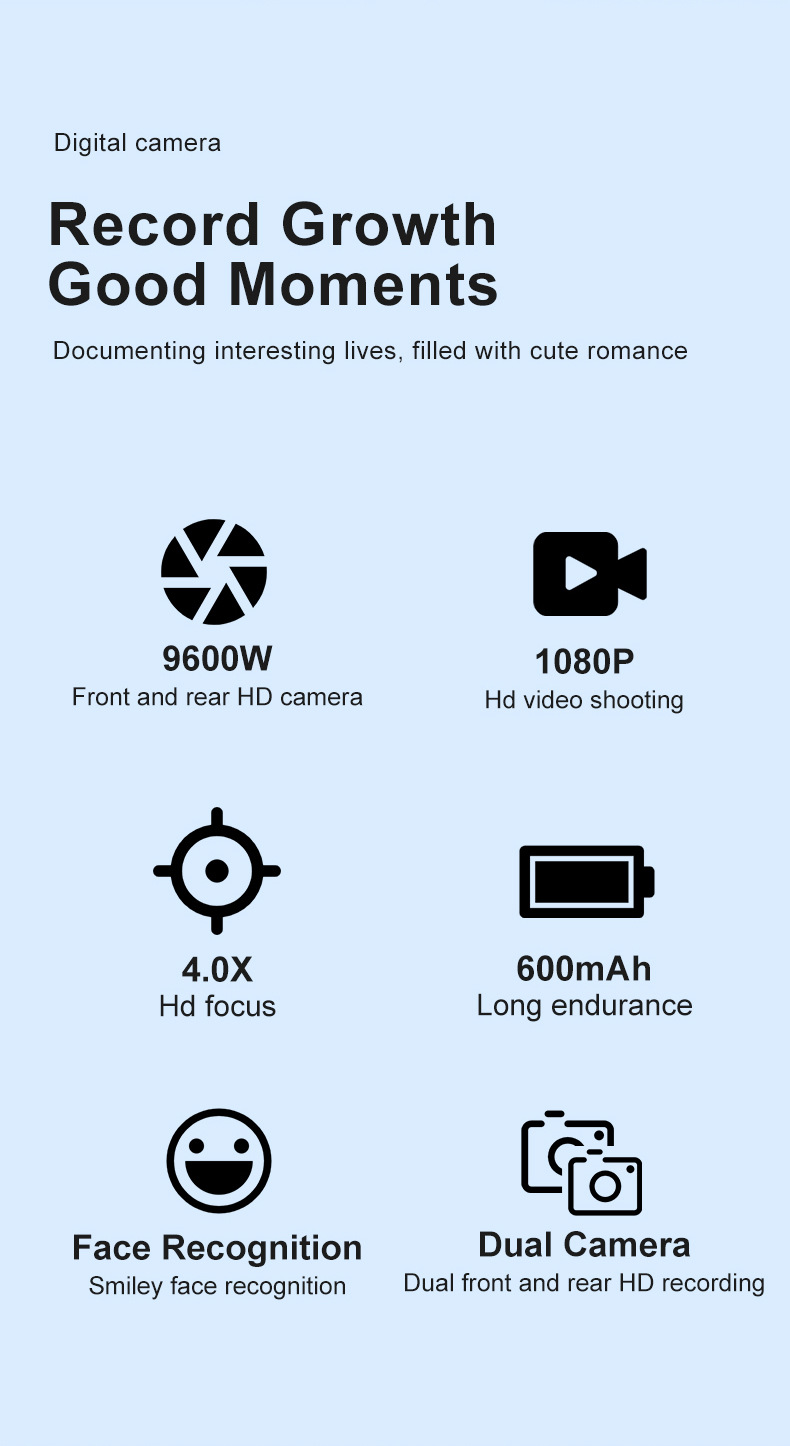 크로스보더 CCD 스타일 자동 초점 AI 카메라 9600만 고화질 더블 반사 성인 및 어린이 카메라