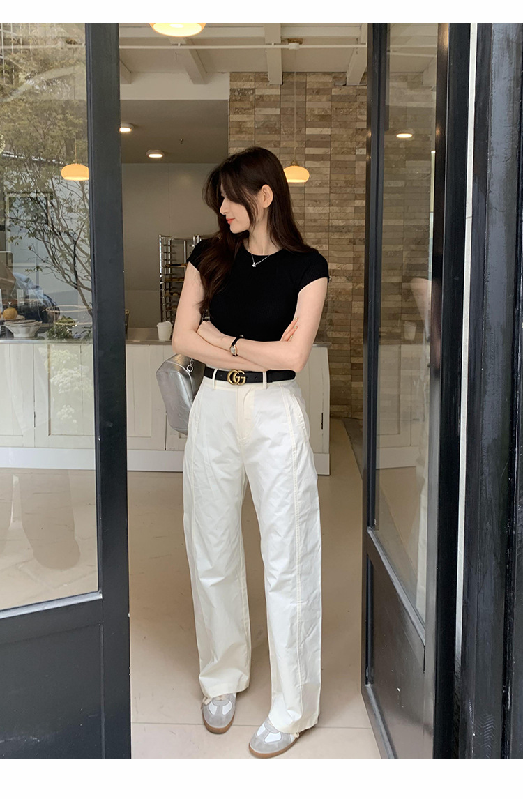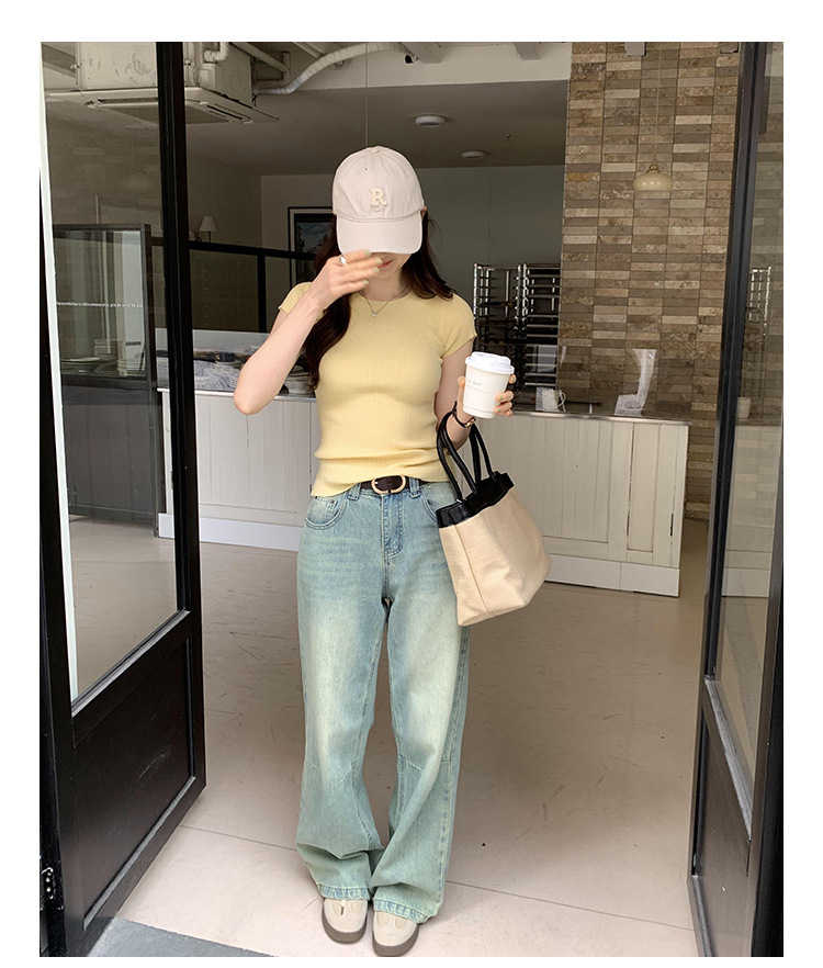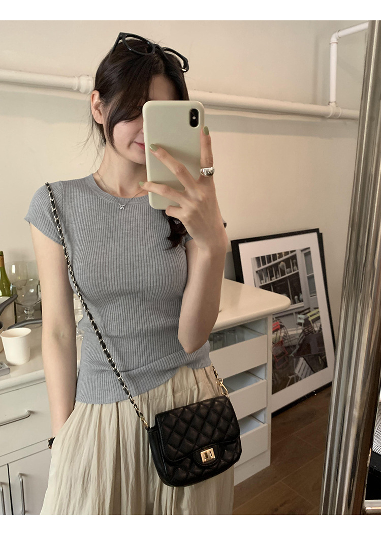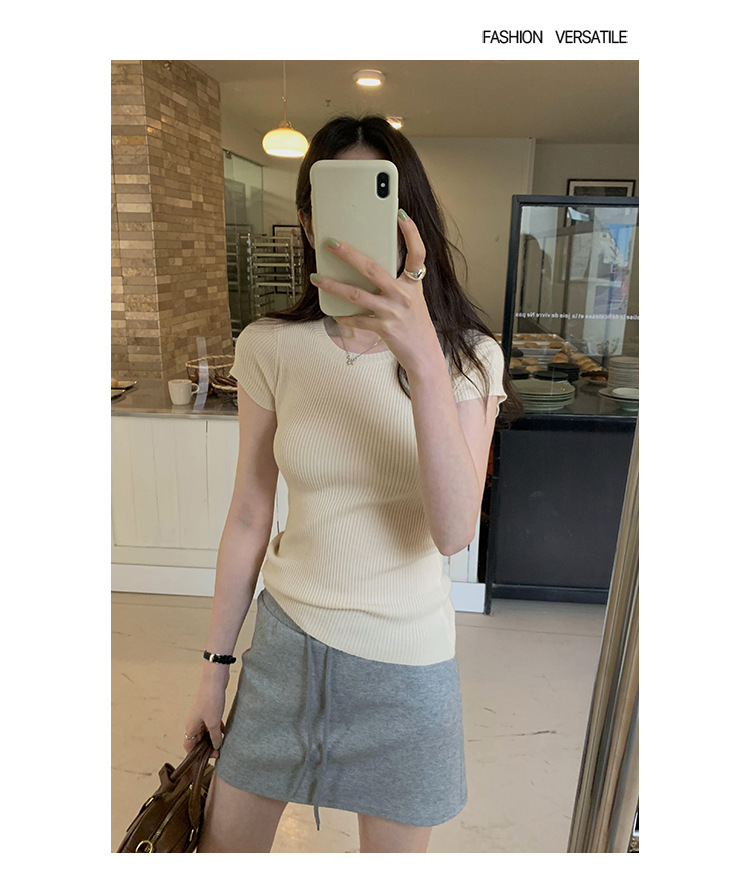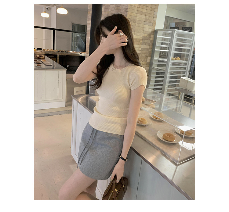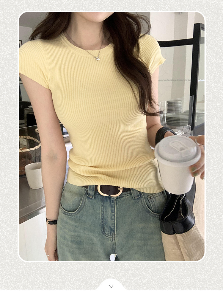 새로운 스타일 간단한 올 매치 반팔 티셔츠 여성용 최고 솔리드 컬러 라운드 넥 슬림 핏 슬리밍 탄성 니트 셔츠 탑스토어 가기