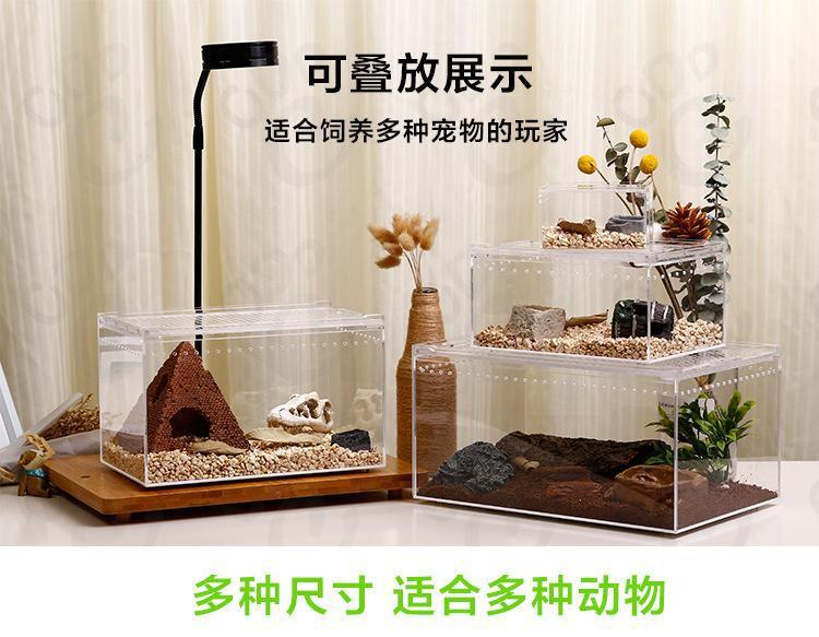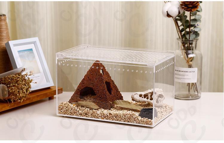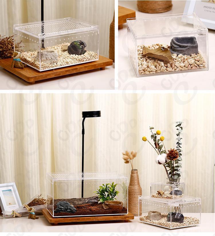 열대 우림 탱크 등반 애완 동물 먹이 상자 아크릴 소라게 먹이기 상자 궁전 Shougong 거미 뿔 개구리 생태 풍경 투명스토어 가기