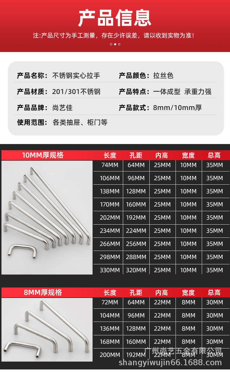 304 스테인레스 스틸 U 자형 단단한 손잡이 옷장 캐비닛 서랍 분배 캐비닛 손잡이 용접 산업용 판금 손잡이