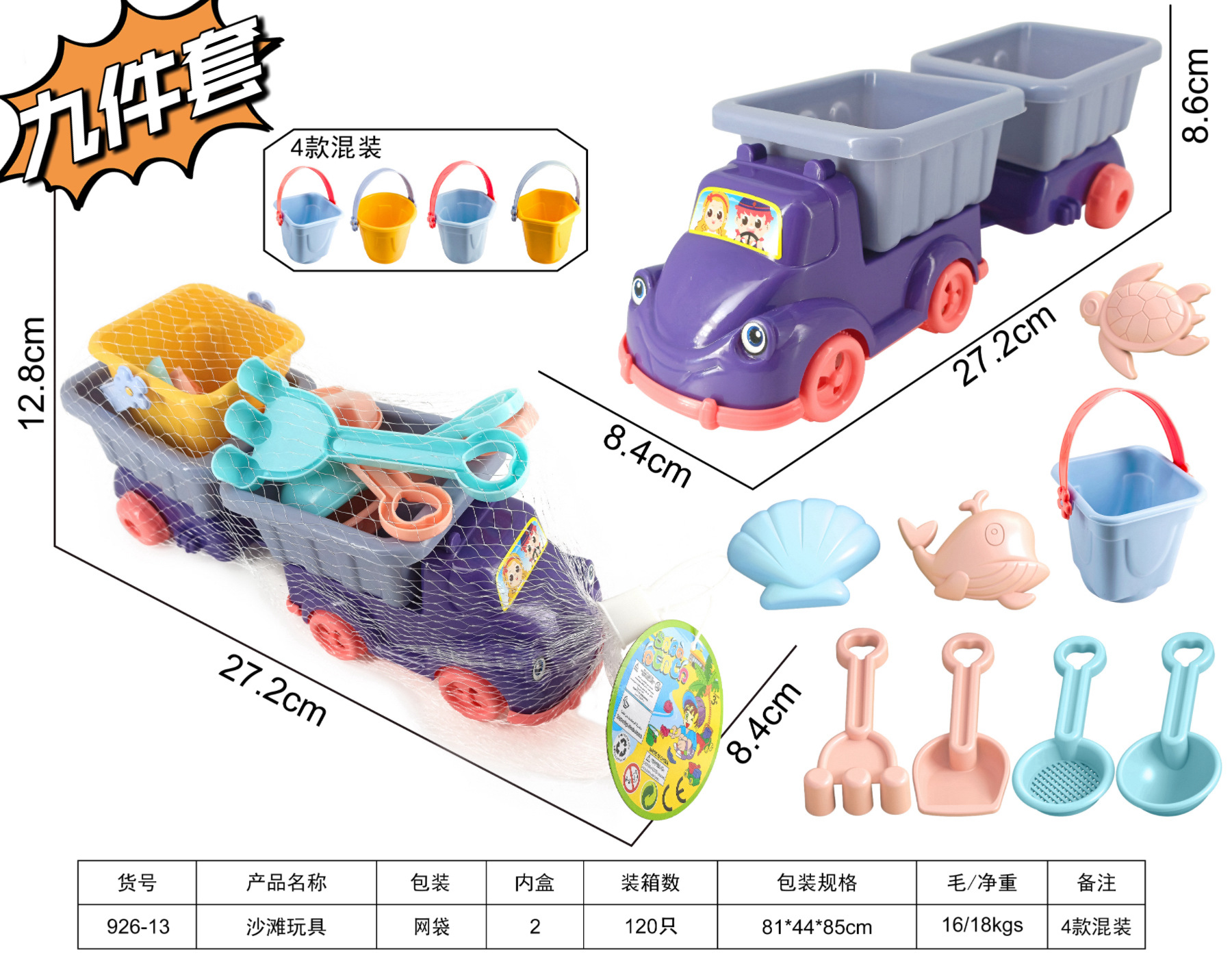 • 보라색 9 피스 비치 카 120 세트/상자
