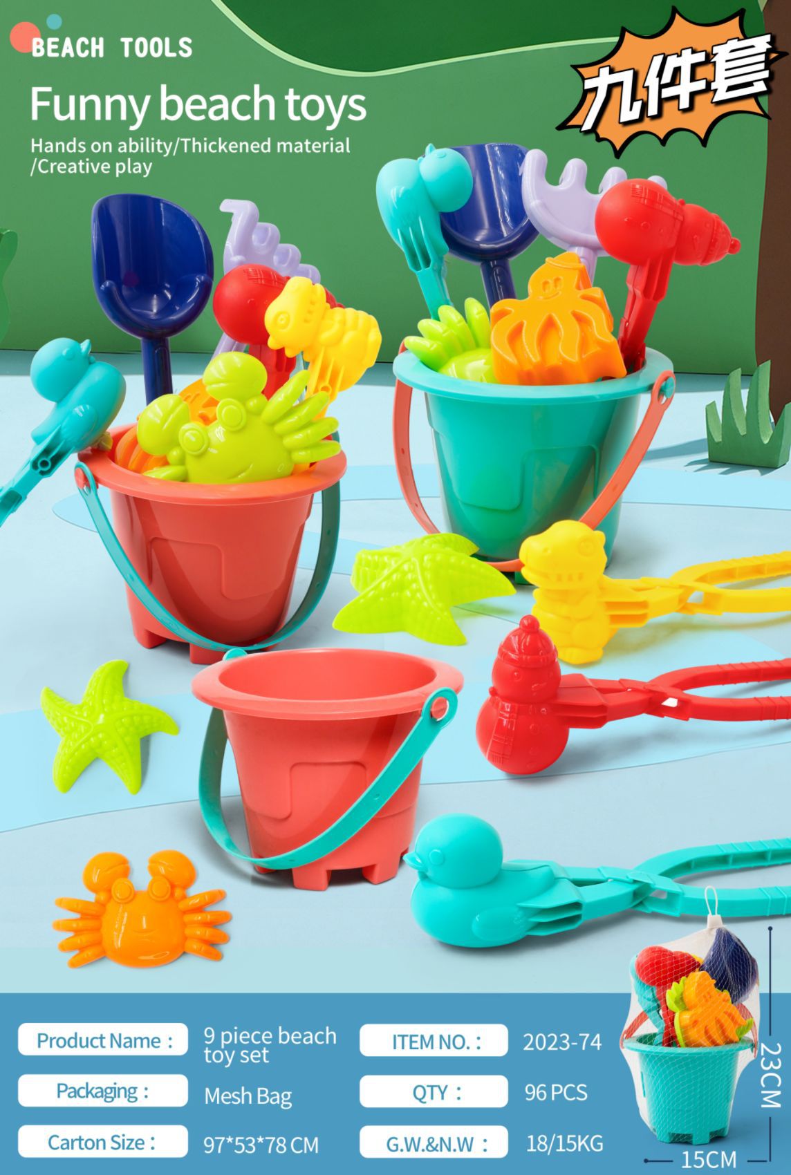 • 9 피스 비치 버킷 96 세트/상자