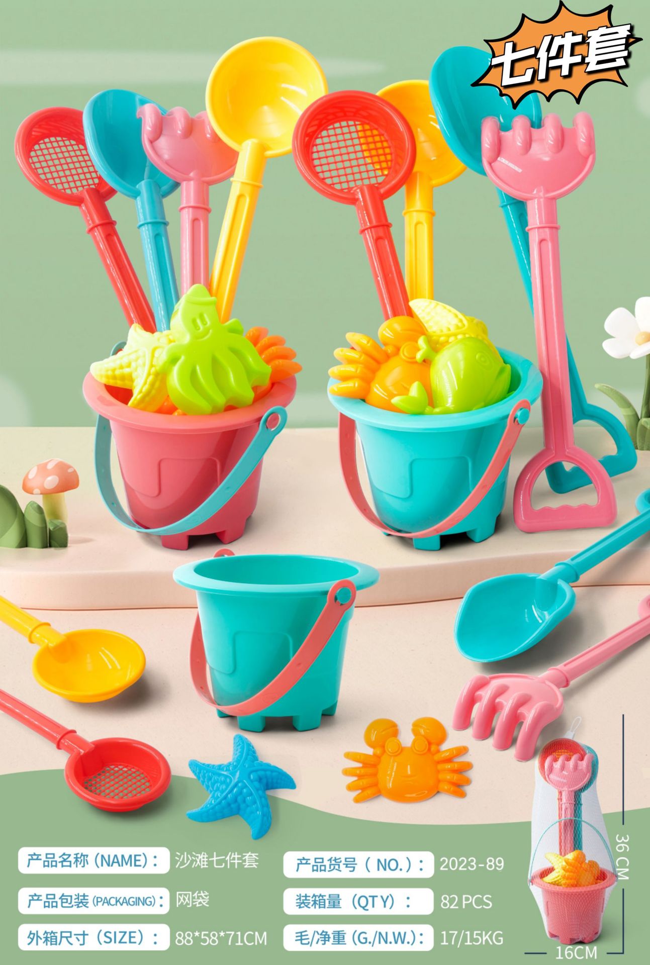 • 세븐 피스 비치 버킷 82 세트/상자
