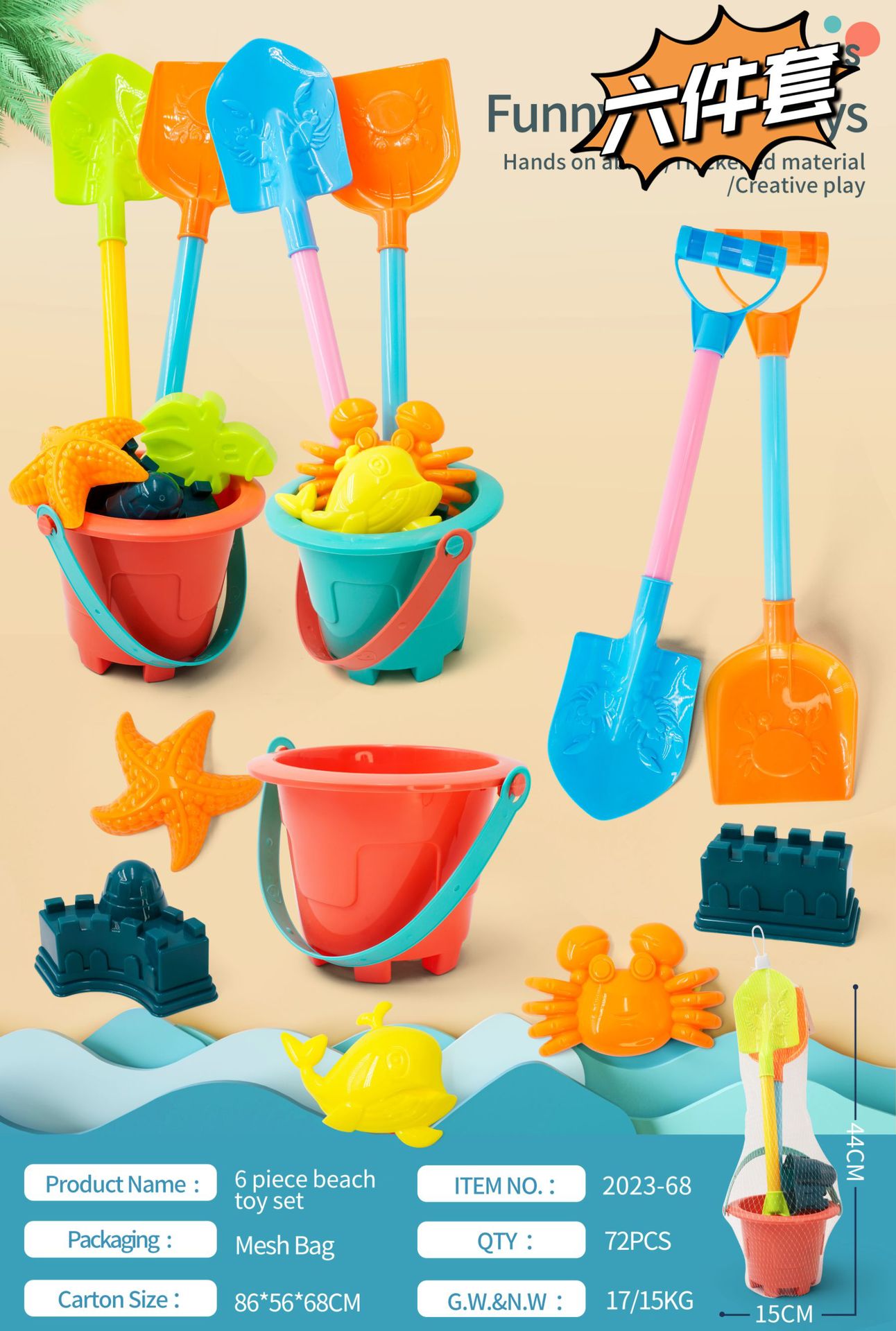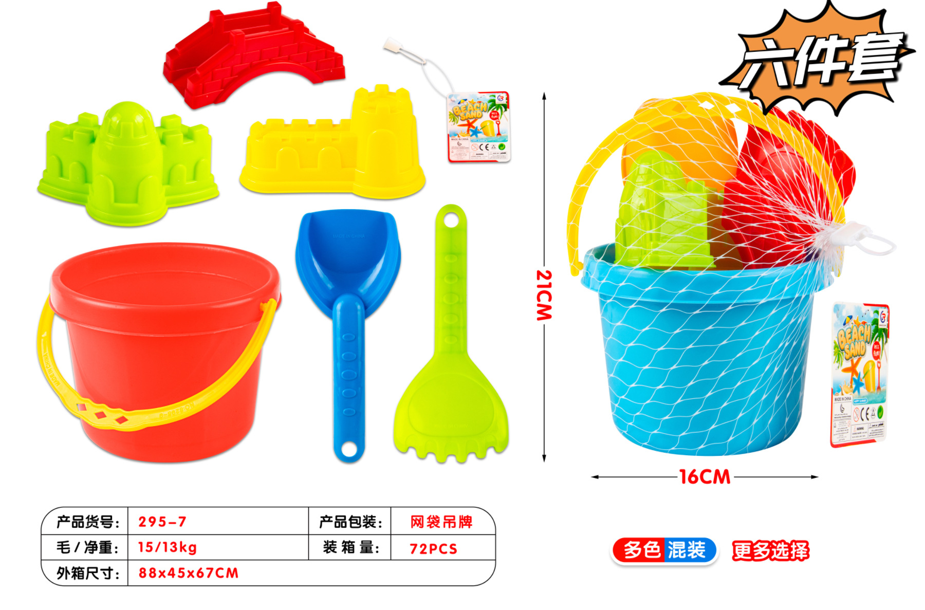 • 6 피스 비치 버킷 72 세트/상자