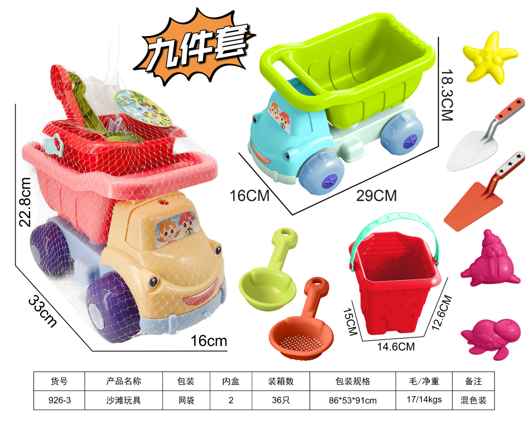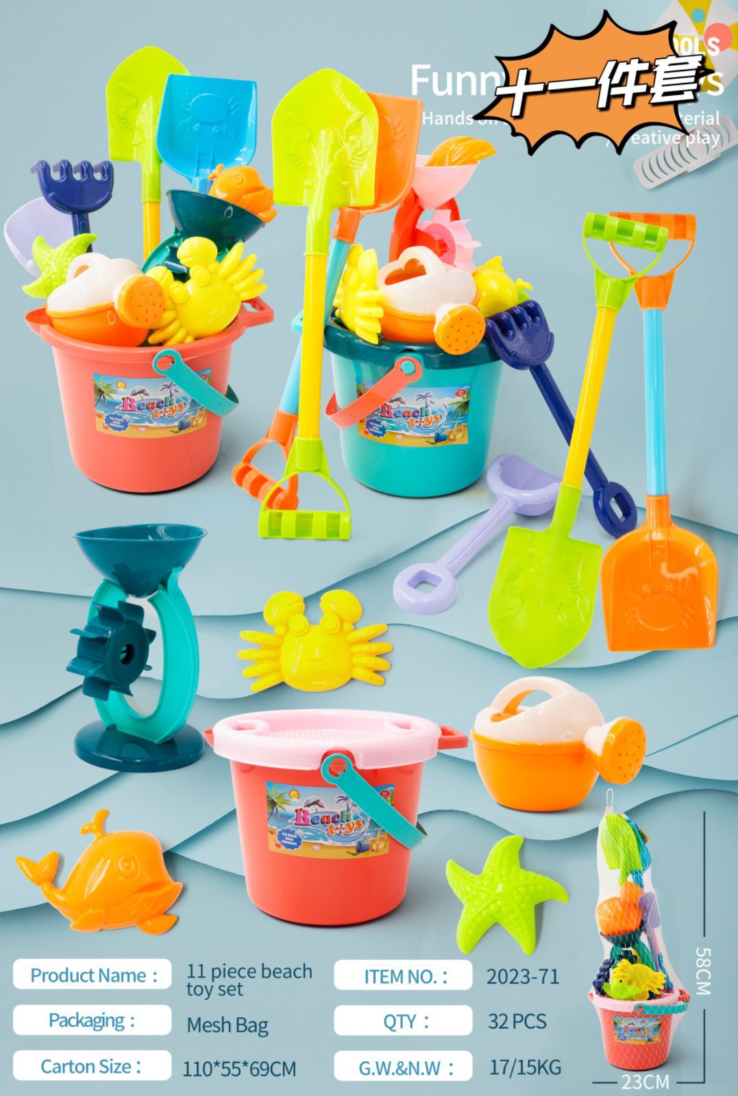 • 11 조각 비치 버킷 32 세트/상자