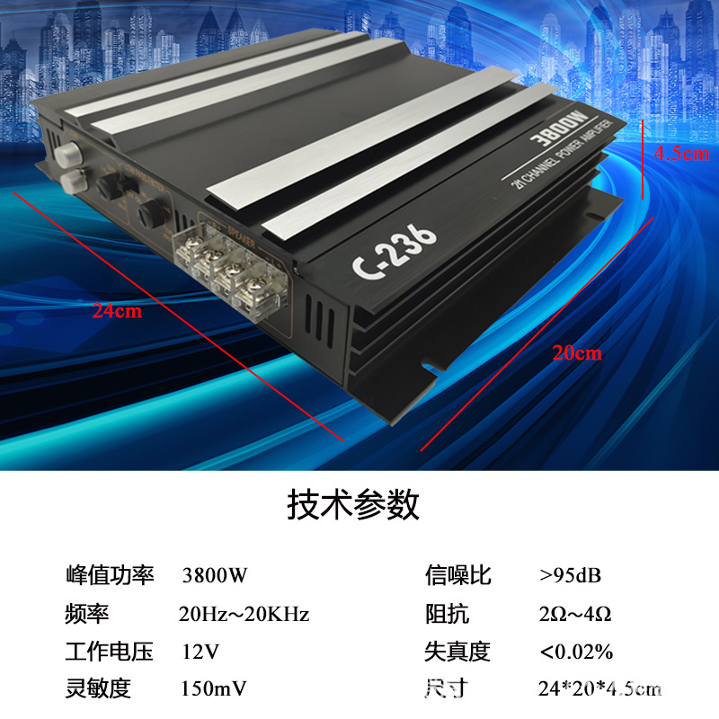 공장 직접 판매 C-236 고출력 3800W 자동차 전력 증폭기 브랜드 특별 가격 2 채널 2 웨이 자동차 전력 증폭기
