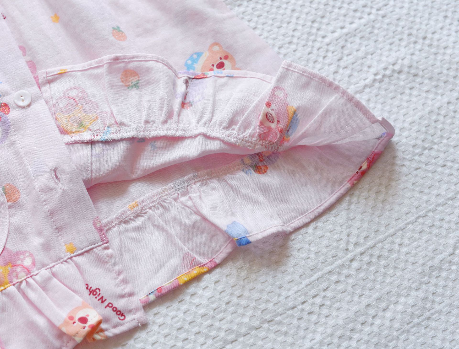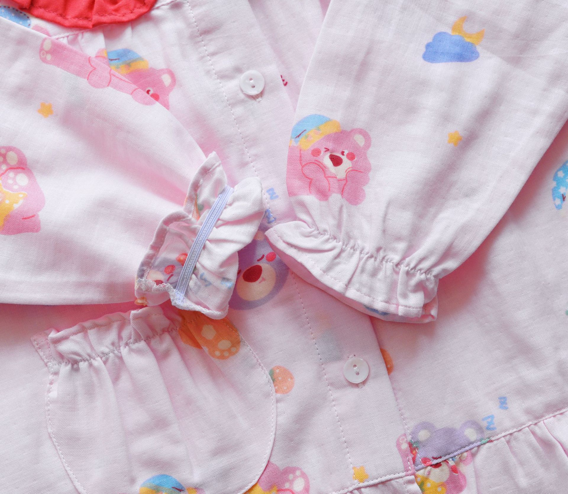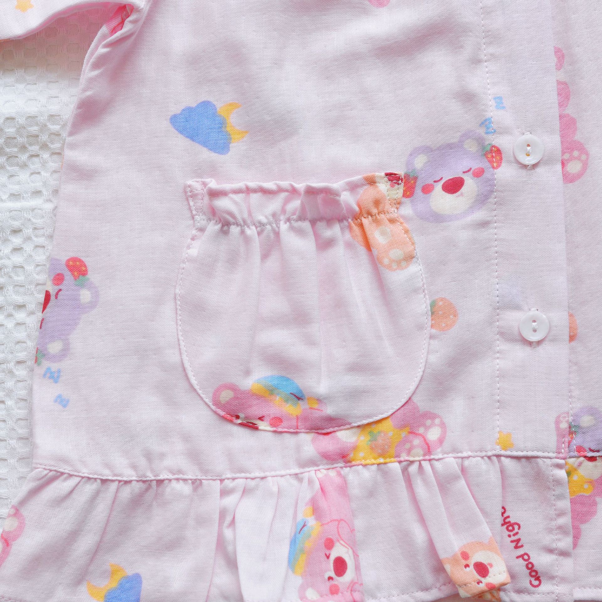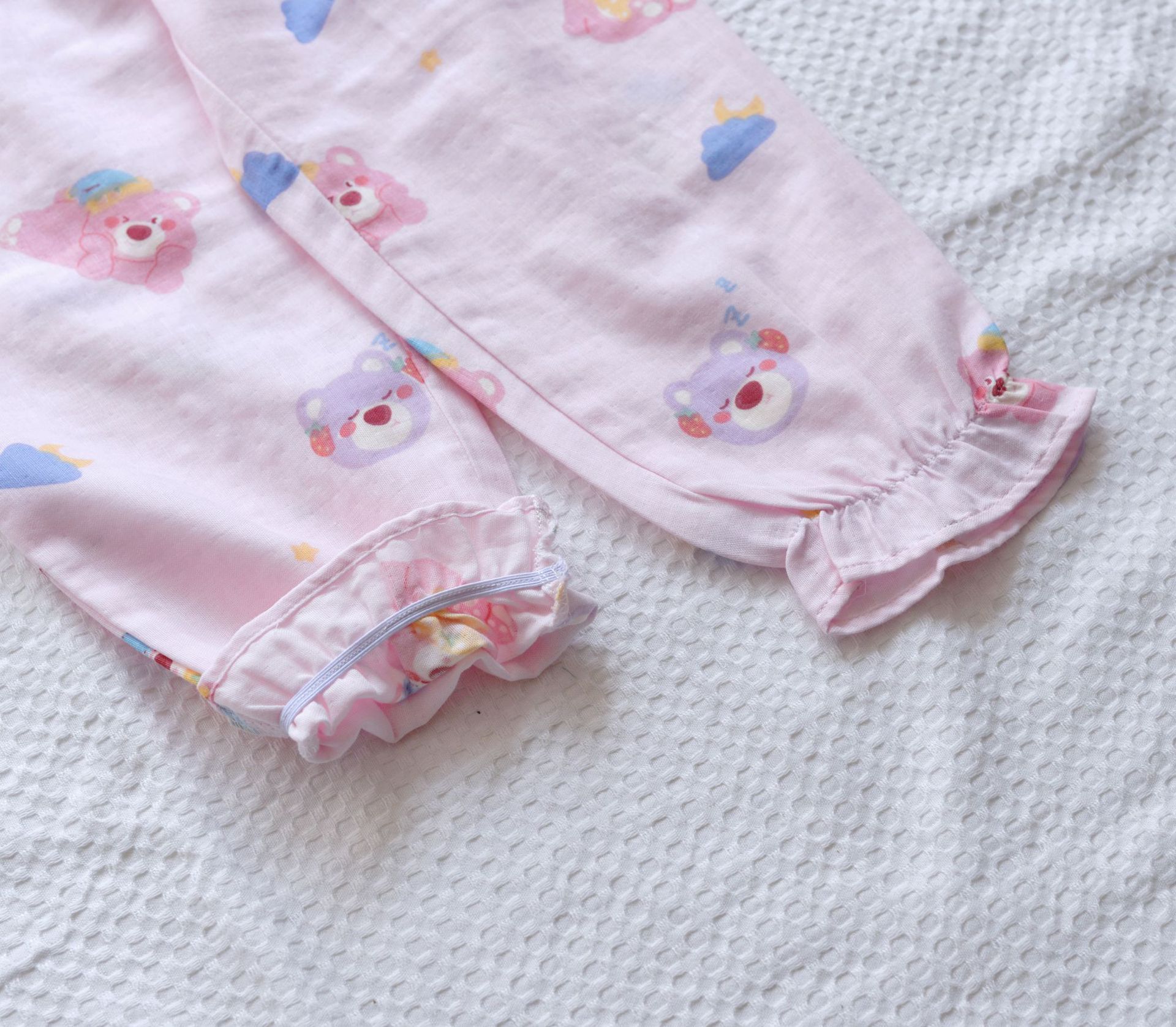봄과 가을 새로운 면 소녀 인형 칼라 옷깃 긴 소매 면 거즈 만화 딸기 아기 집 옷 세트스토어 가기