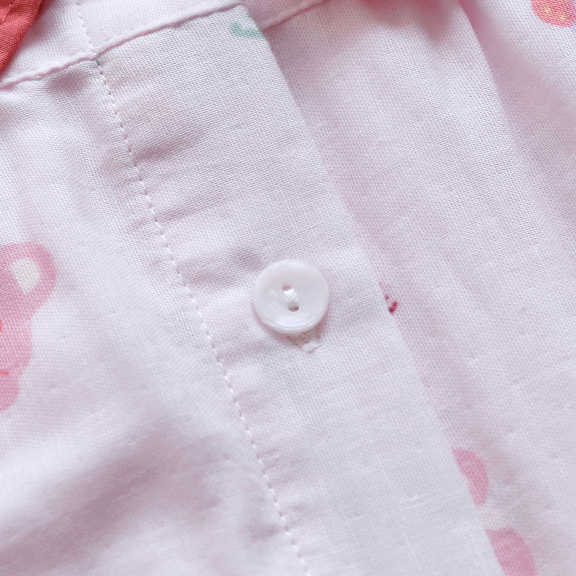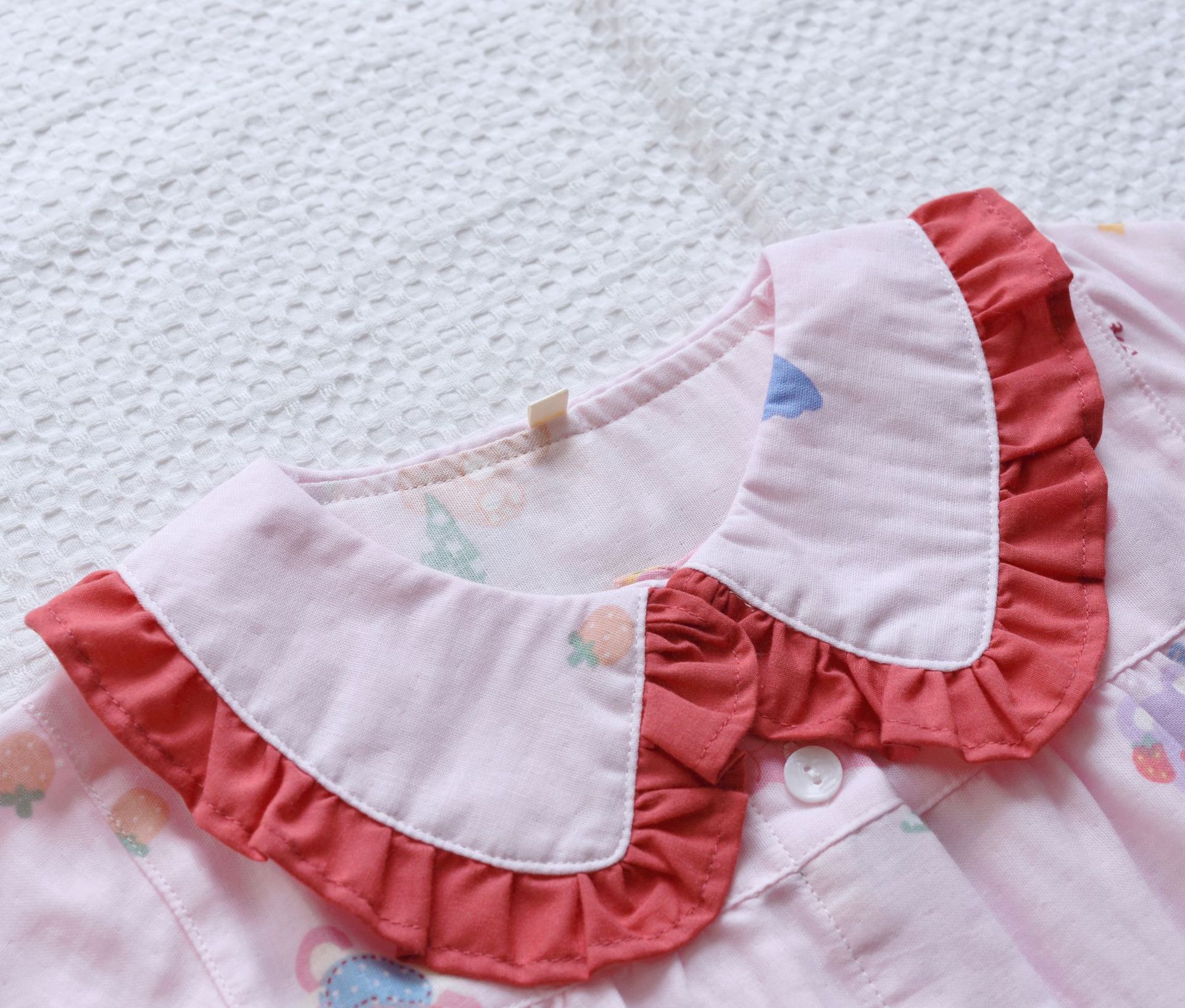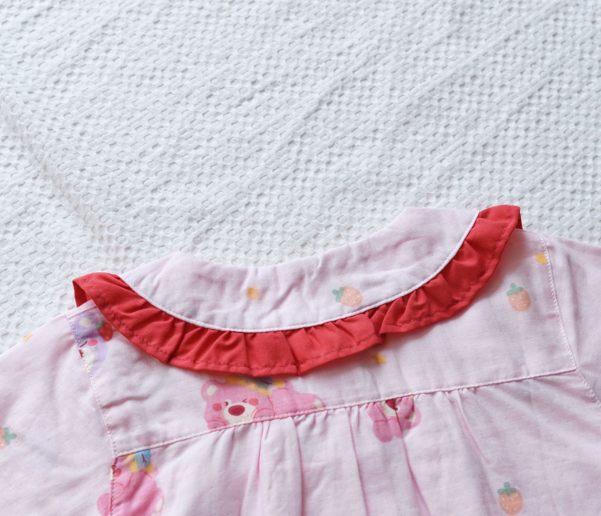 봄과 가을 새로운 면 소녀 인형 칼라 옷깃 긴 소매 면 거즈 만화 딸기 아기 집 옷 세트