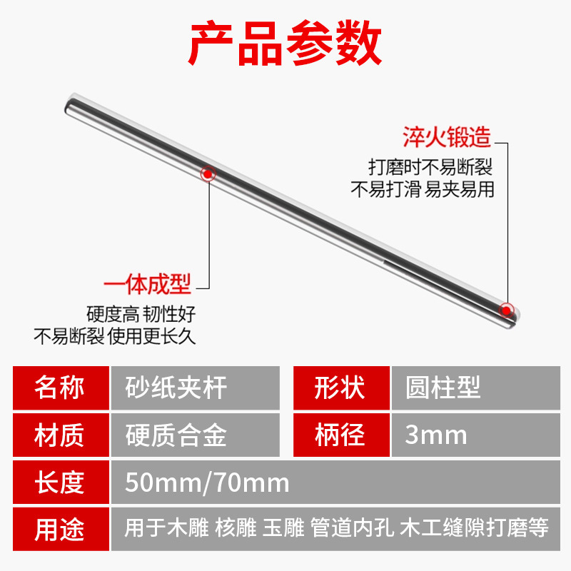 用途:适配于砂纸夹杆,用于各种雕刻、菩提、猫眼、手办、器皿等小物件手工打磨抛光以及汽修,家私,五金,不锈钢等的抛光研磨。
