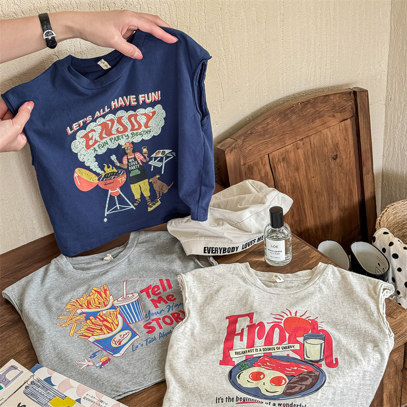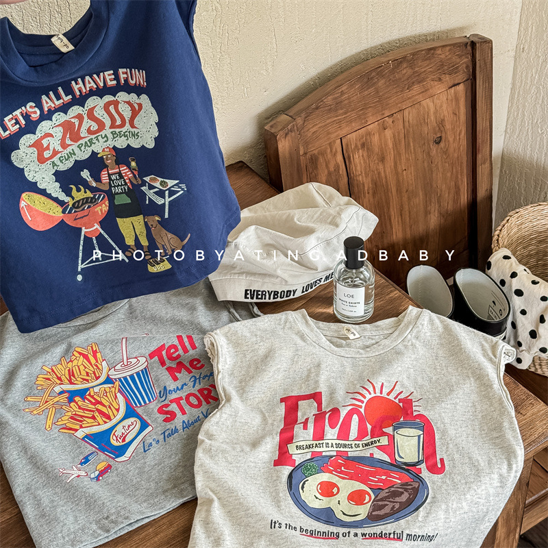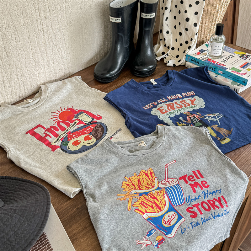 2026 호주 직리 아동복 아동용 한국 스타일 민소매 티셔츠 조끼 여아 여름옷 남아 베이스 레이어 셔츠 5271