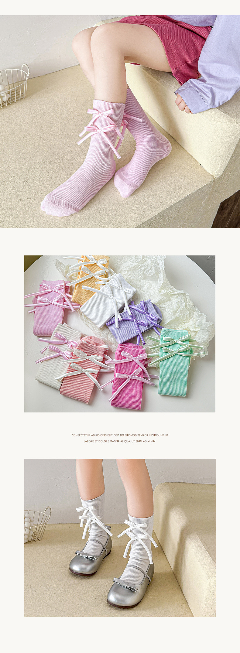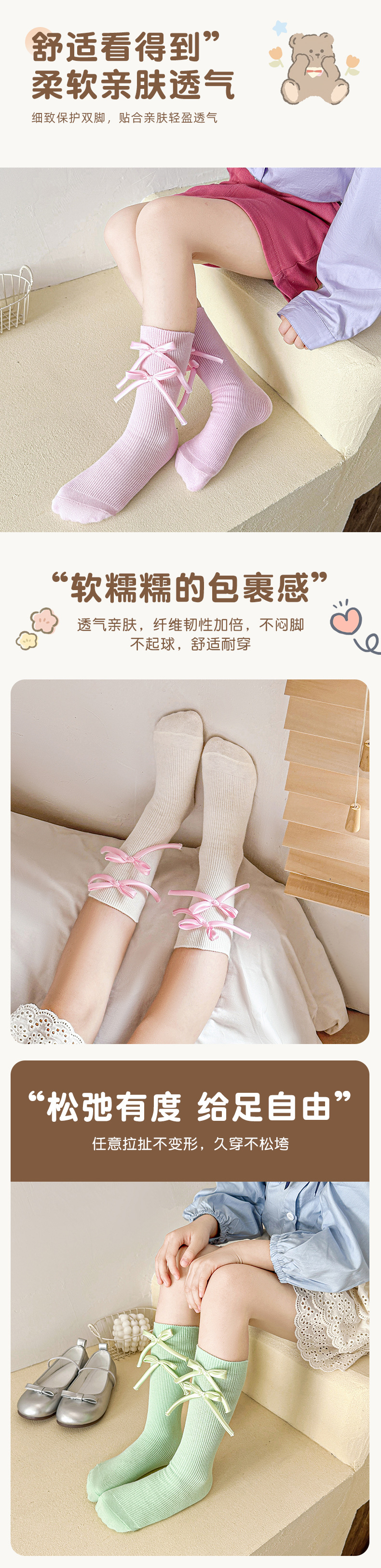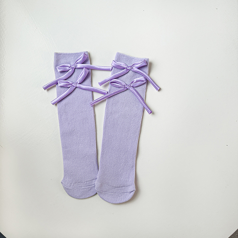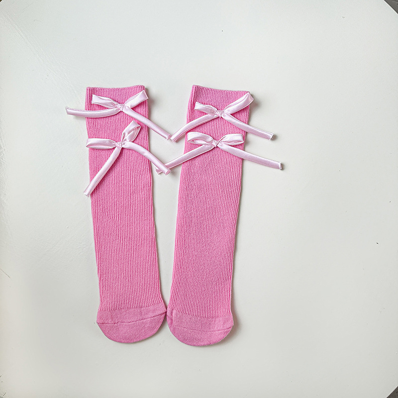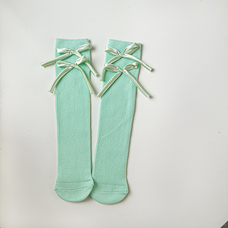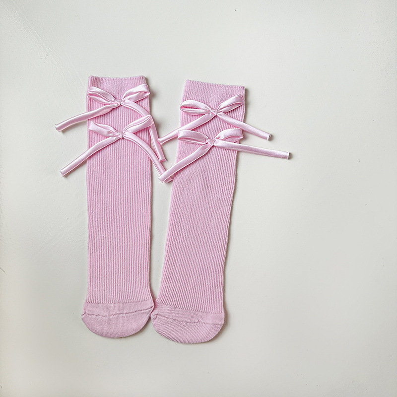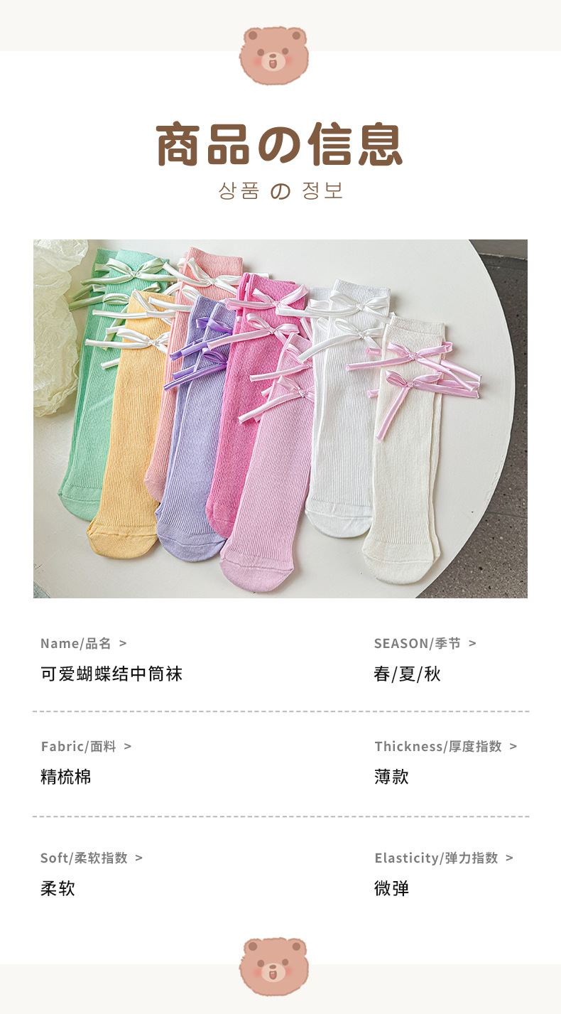 봄과 가을 새로운 소녀 양말 면 어린이 중간 길이 양말 캔디 컬러 발레 스타일 소녀 아기 스타일 스타킹